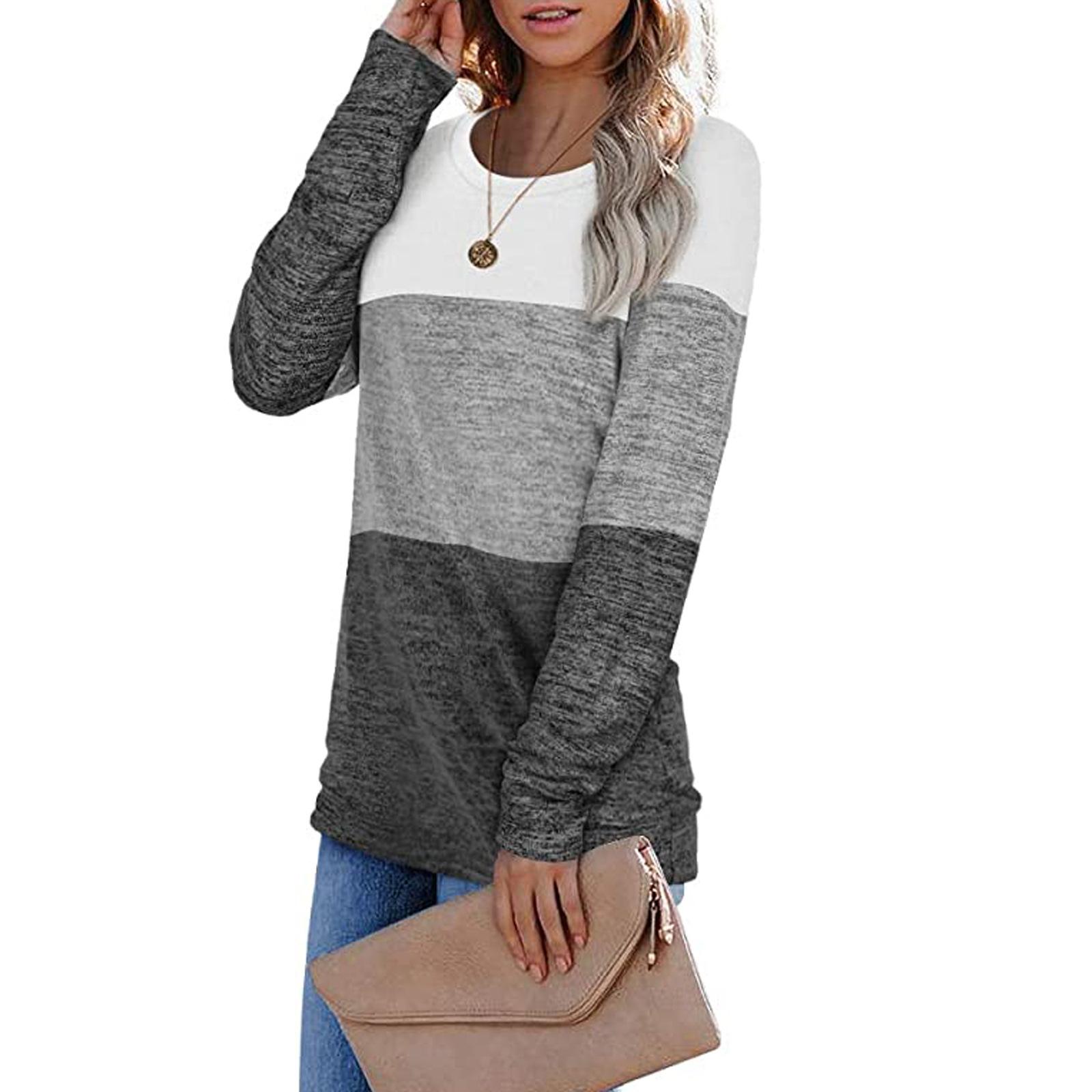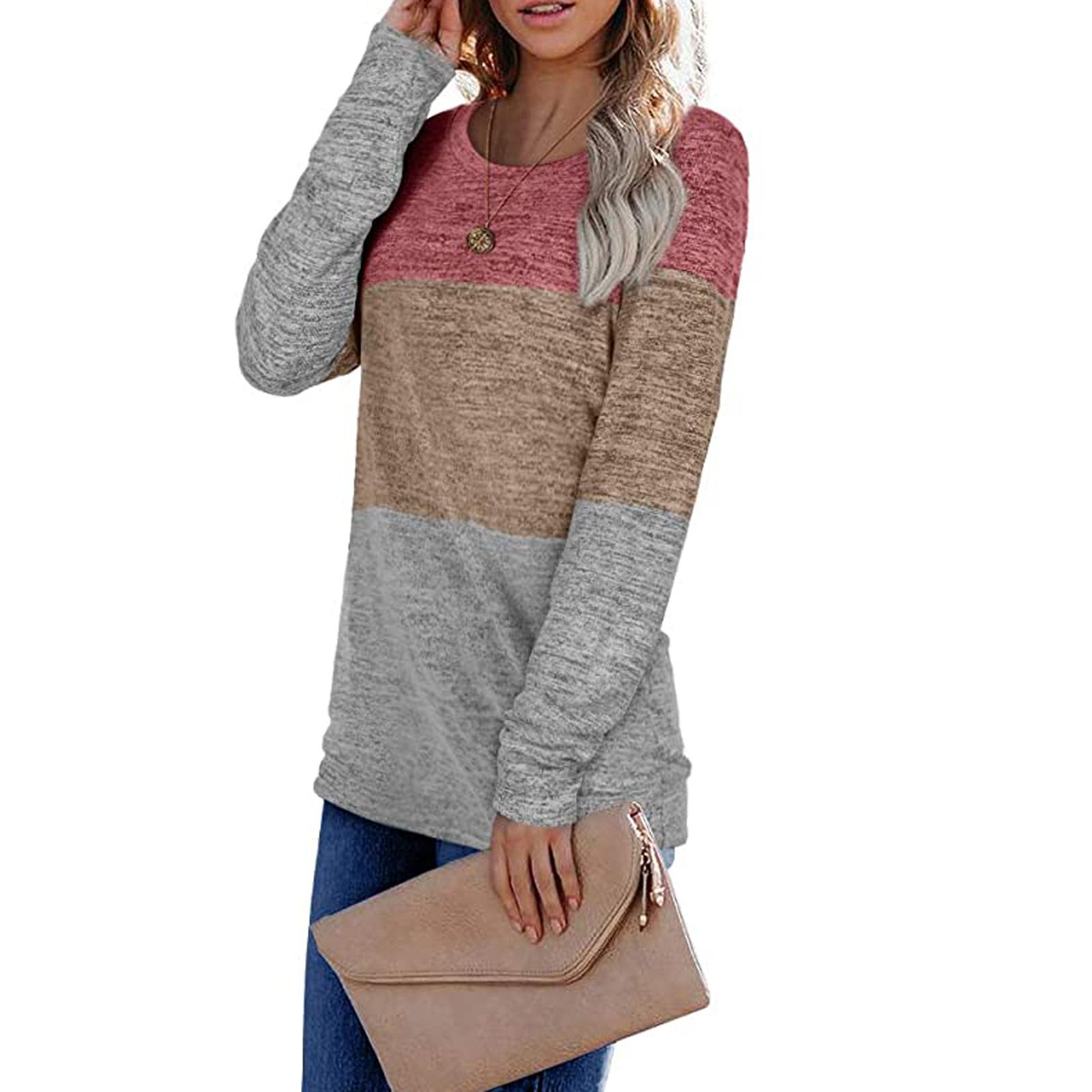 Otoño e invierno, ropa nueva para mujer europea y americana, jersey de cuello redondo para mujer de Amazon, suéter a juego de colores, top transfronterizo para mujer