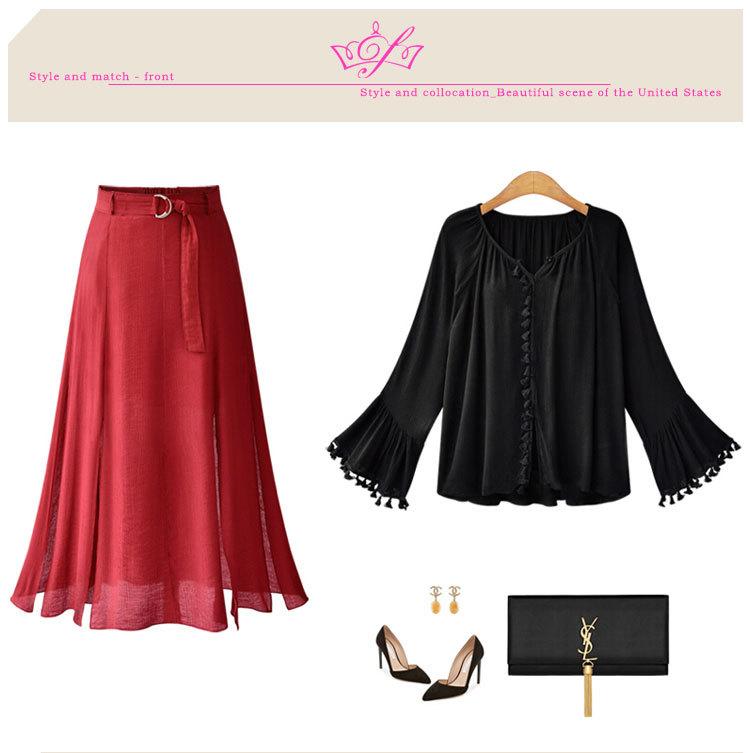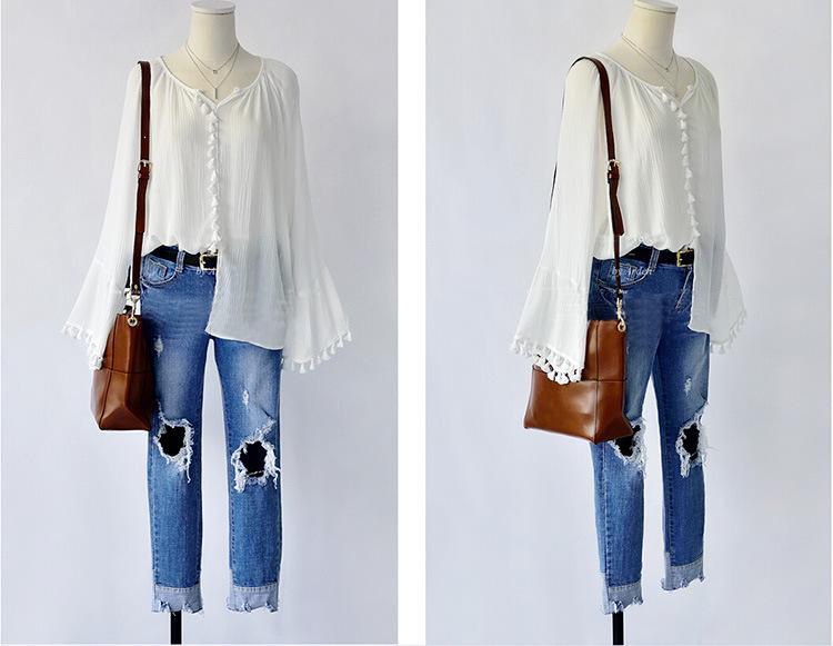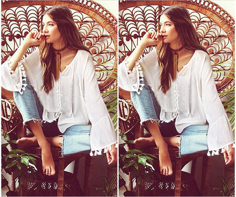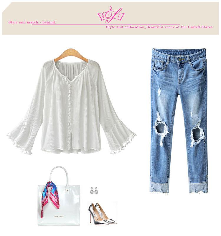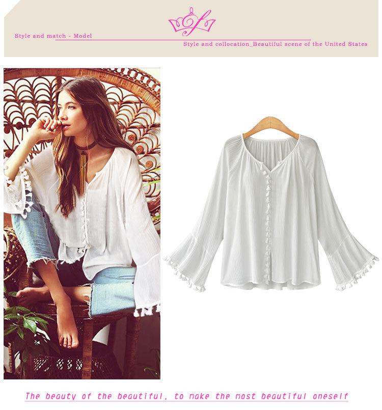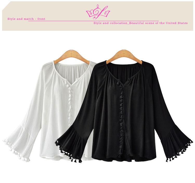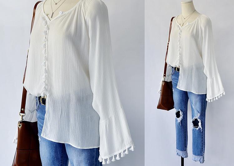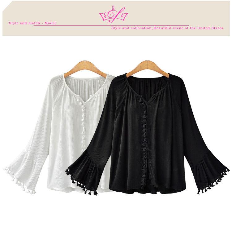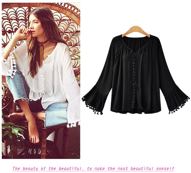 Top de camisa de manga larga con manga acampanada de nueva moda de otoño europea y americana