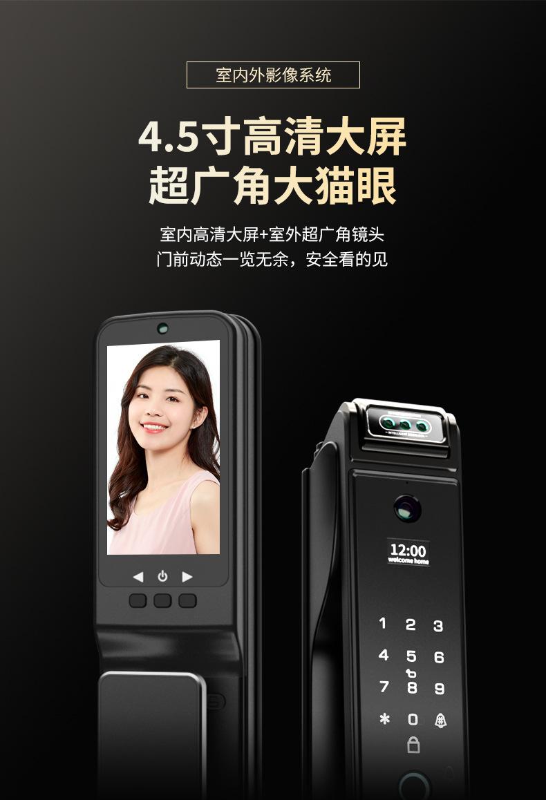 Cerradura de huella dactilar completamente automática, cerradura de seguridad para el hogar con reconocimiento facial, cerradura de puerta inteligente, cerradura de código electrónico con ojo de gato visual y control remoto