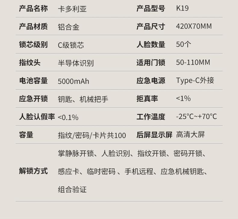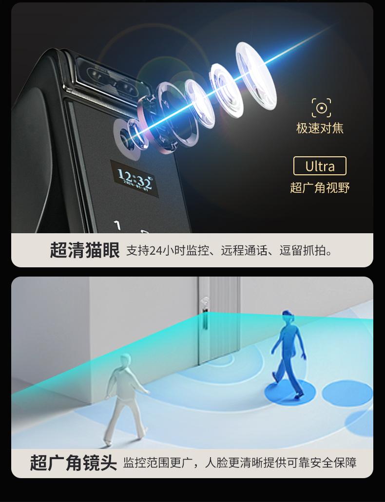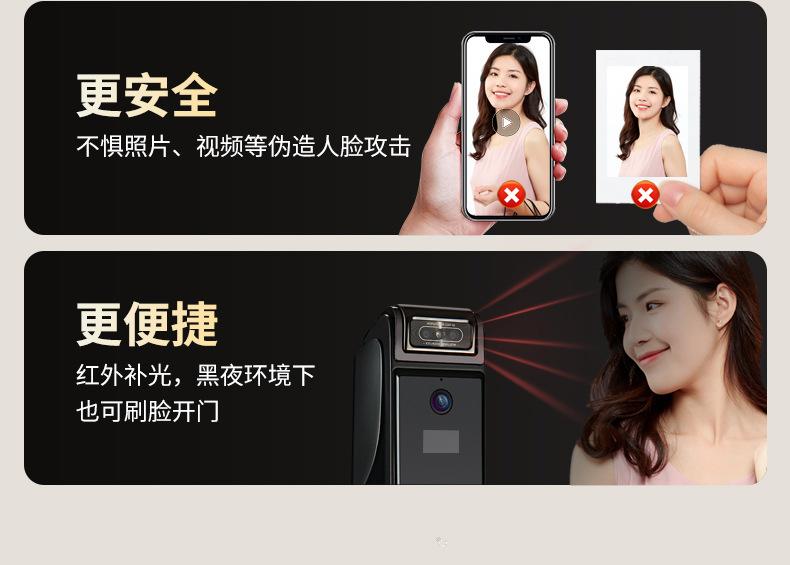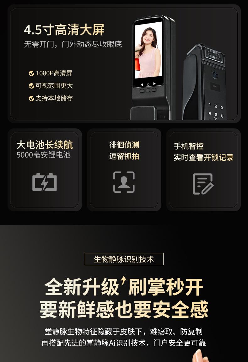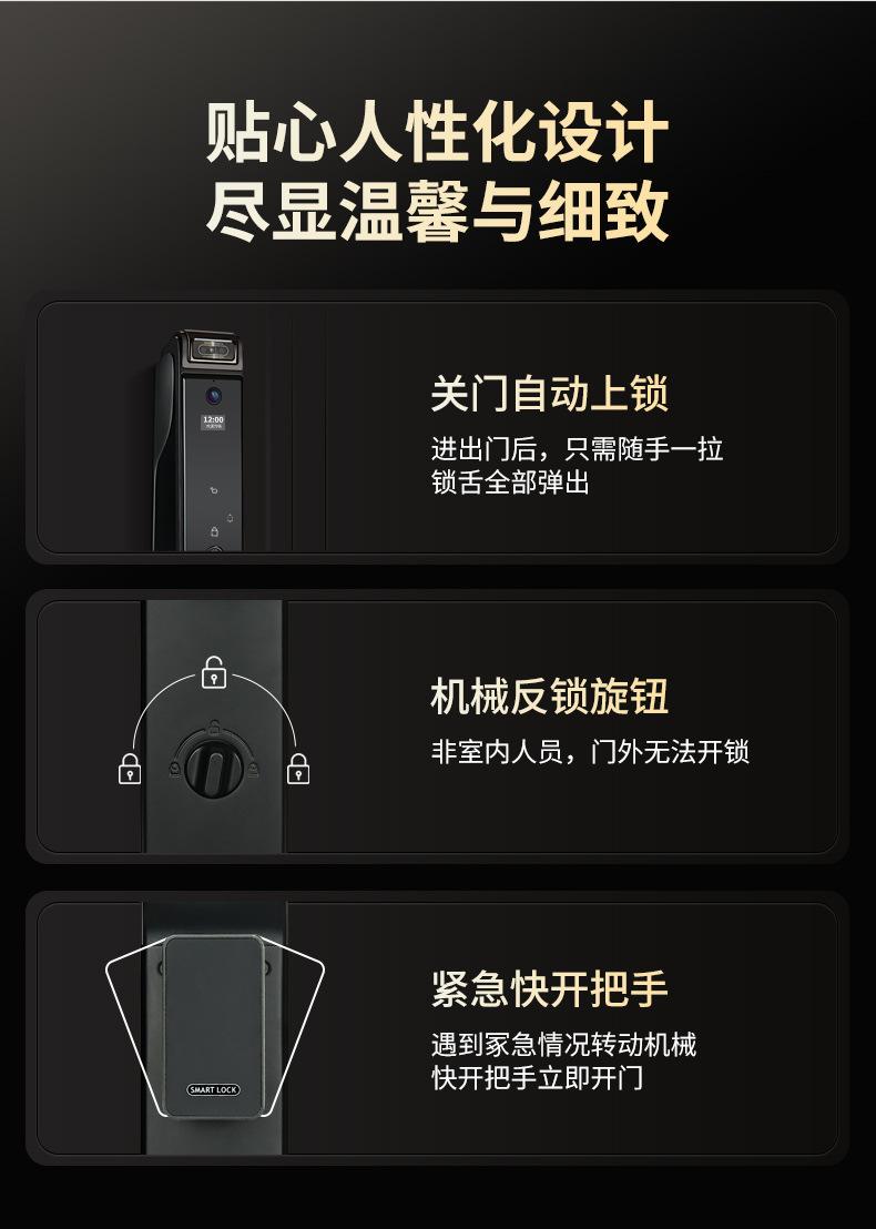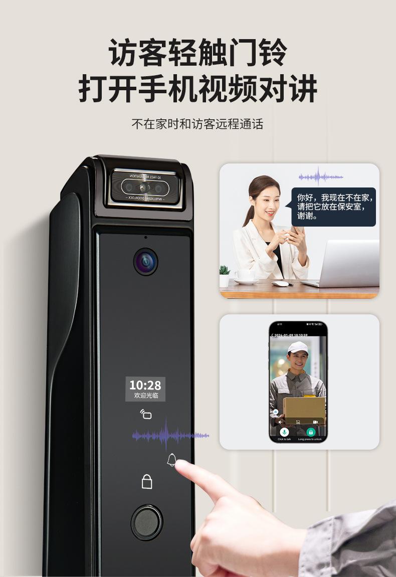 Fingerprint, Password, With key, Palm print, Visible cat eye, Face recognition, Remote unlocking