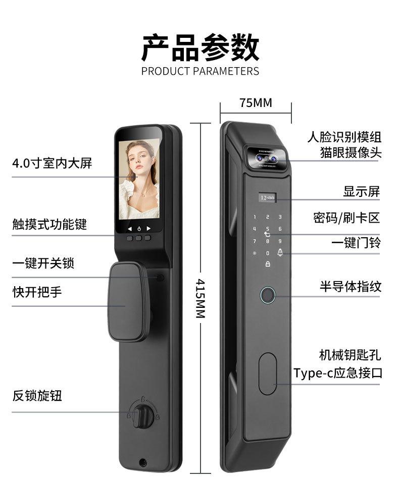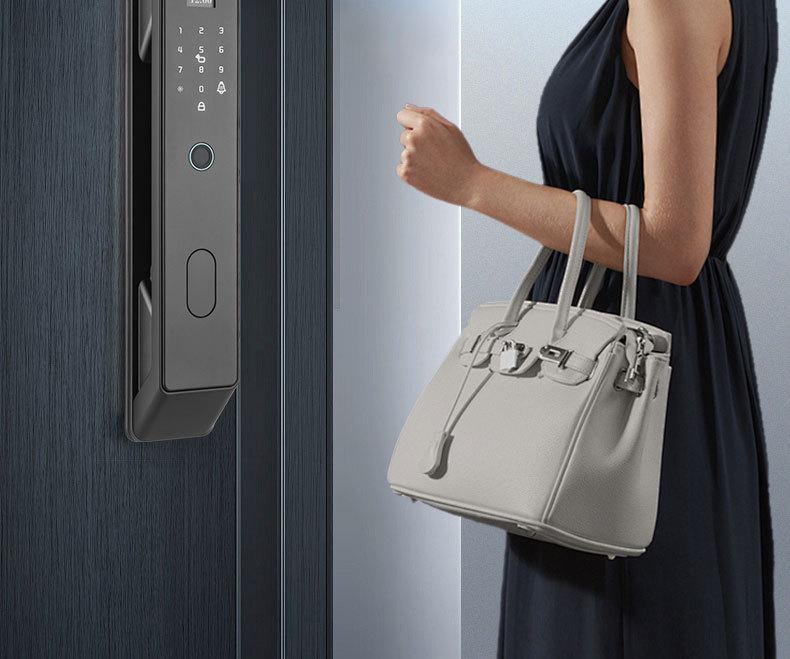 Cerradura Inteligente Kadoria Reconocimiento Facial 3D Huella Digital Contraseña Vena de la Palma Hogar Remota Cerradura de Puerta [Instalación del Paquete]]