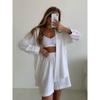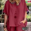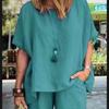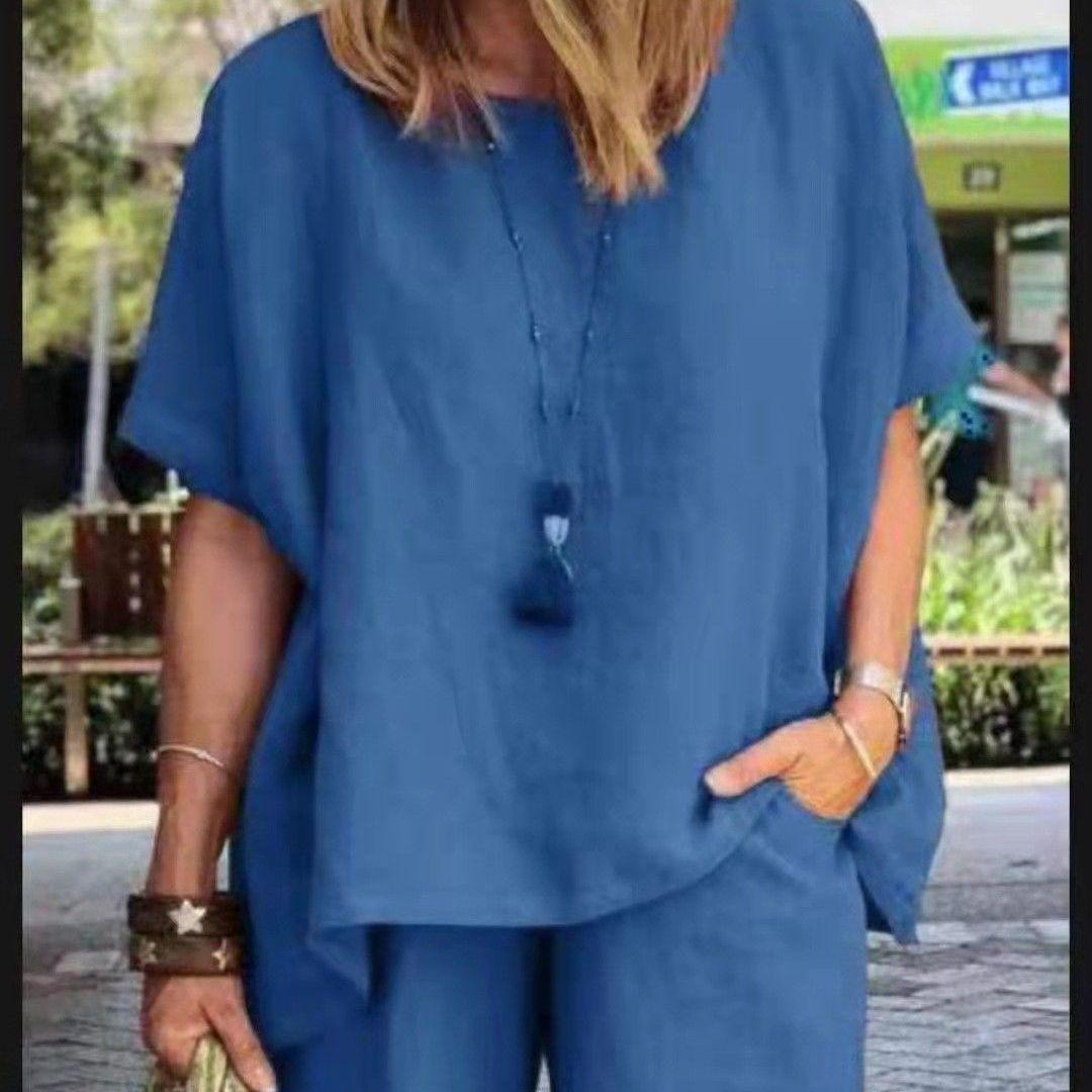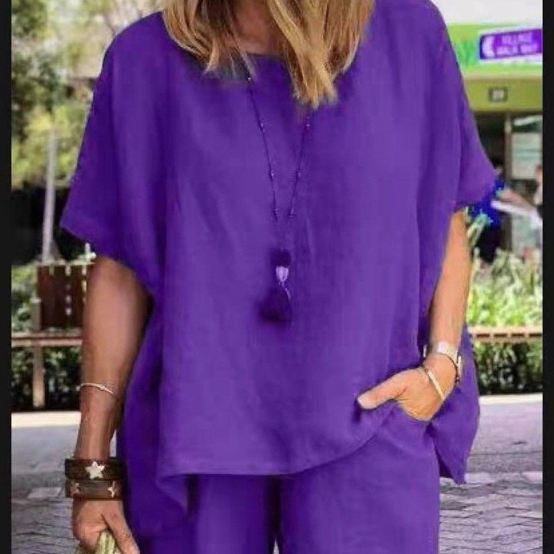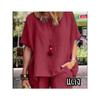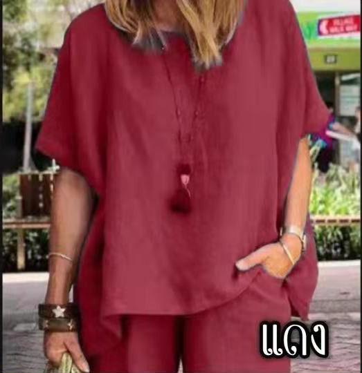 Primavera y Verano Nuevo traje Moda Elegante Suelto Algodón y Lino Manga Corta Shorts Conjunto de dos piezas