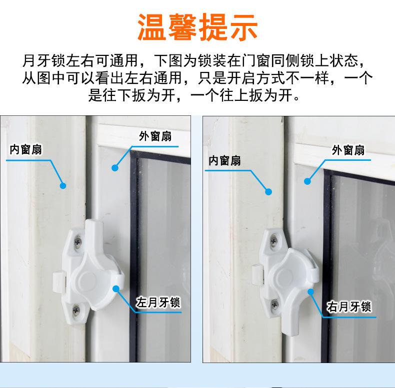 Cerradura de ventana de acero y plástico, cerradura de media luna para puerta y ventana de plástico, cerradura antirrobo para ventana corrediza, hebilla con gancho de seguridad para ventana, cerrojo de aleación de aluminio