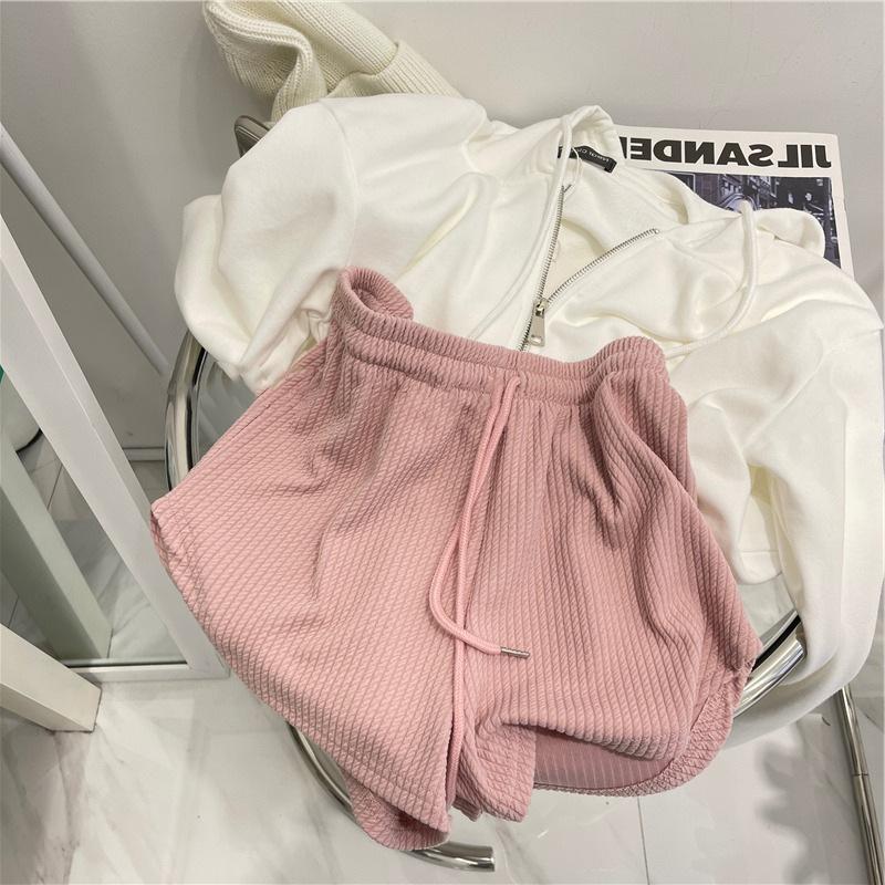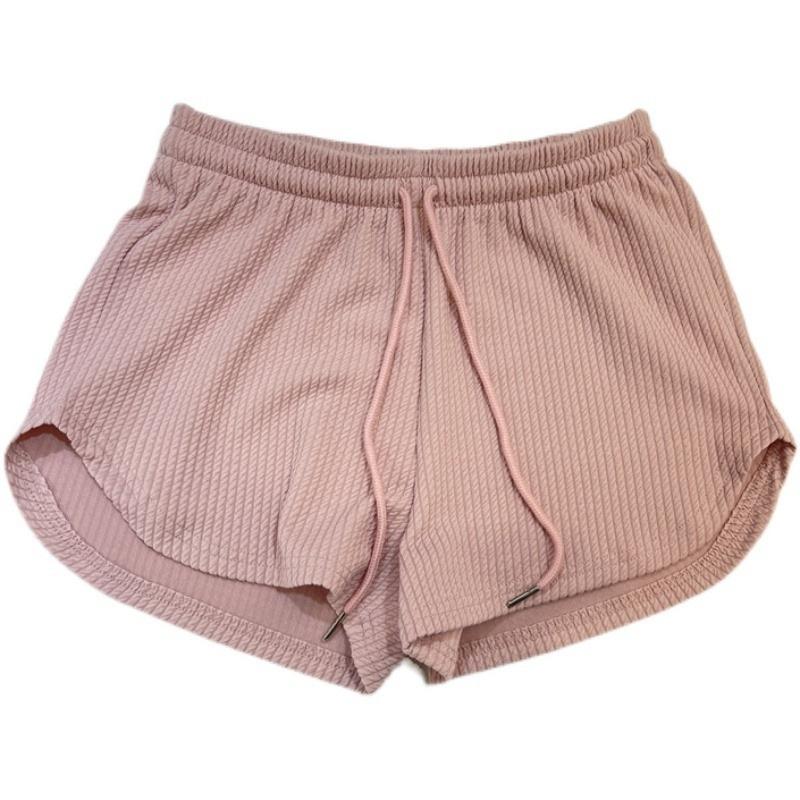 Pantalones cortos deportivos casuales de color rosa con giro para mujer, de verano, de cintura alta, pierna ancha, adelgazantes, blancos, de cintura holgada, para correr y hacer ejercicio.