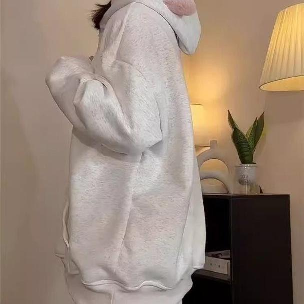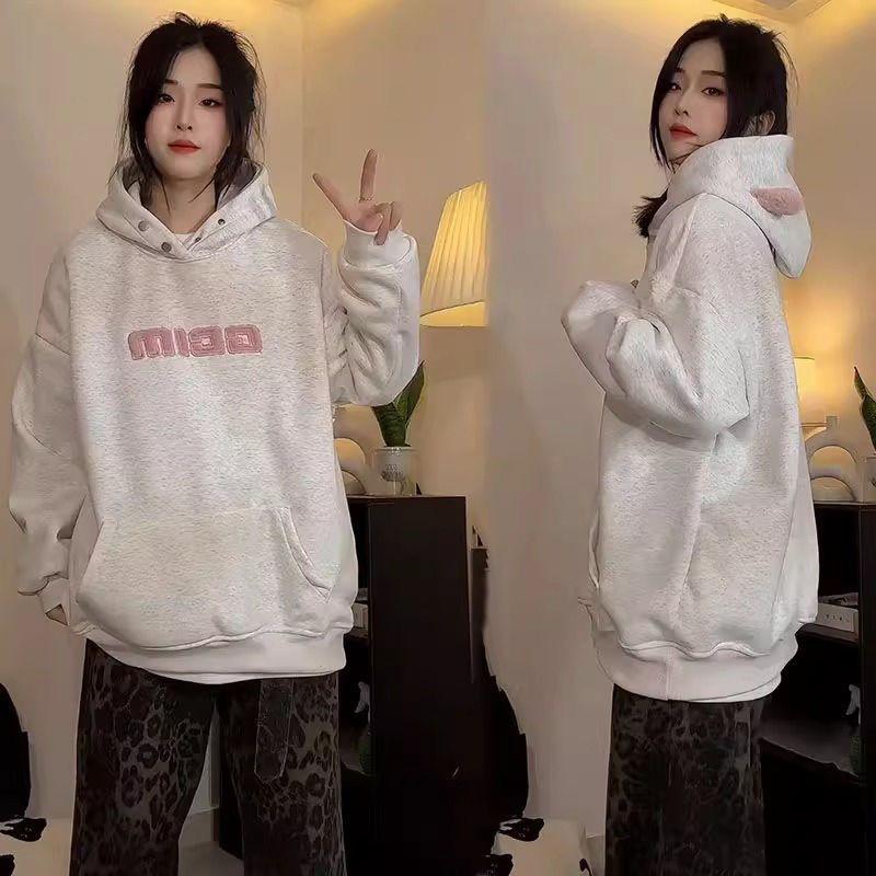 Forrado de vellón (algodón puro algodón chino compuesto terciopelo zorro plateado) suéter holgado con capucha acolchado flocado de trabajo original para mujer