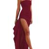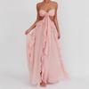 Vestido Elegante Nuevo de Verano Europeo y Americano en Stock, Vestido Largo sin Tirantes y sin Espalda de Color Sólido con Abertura Alta, Ajustado de Comercio Exterior