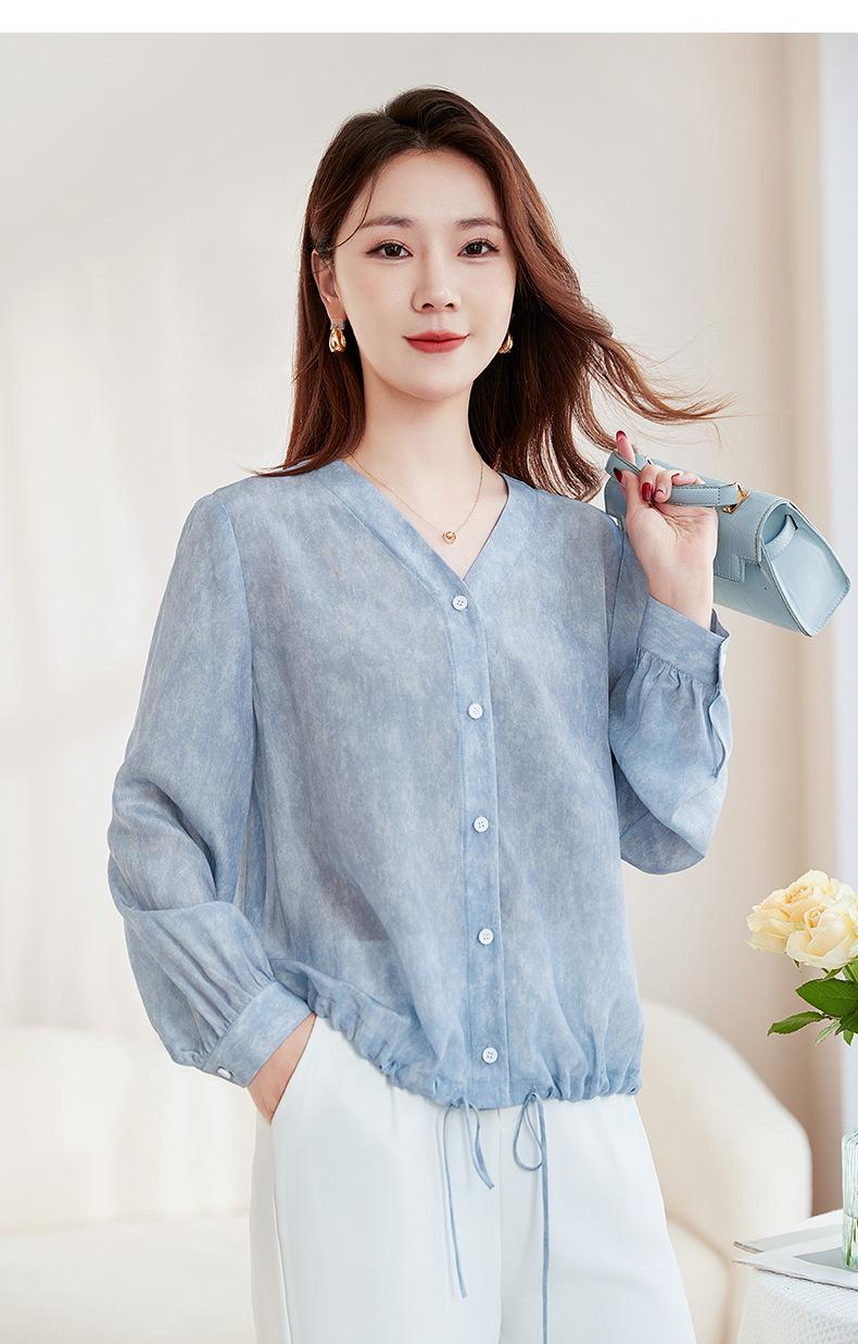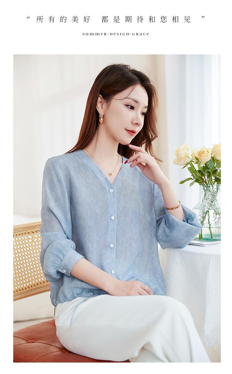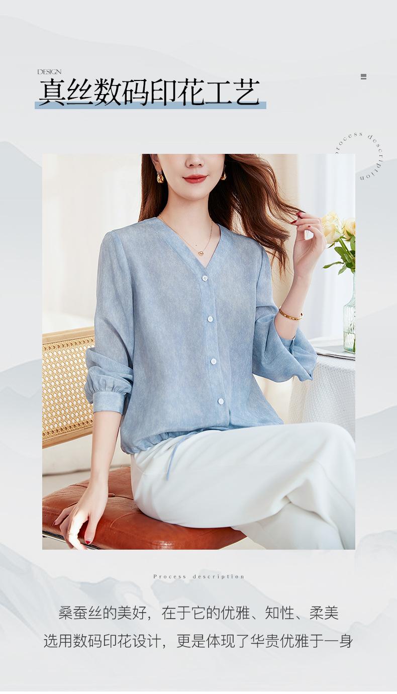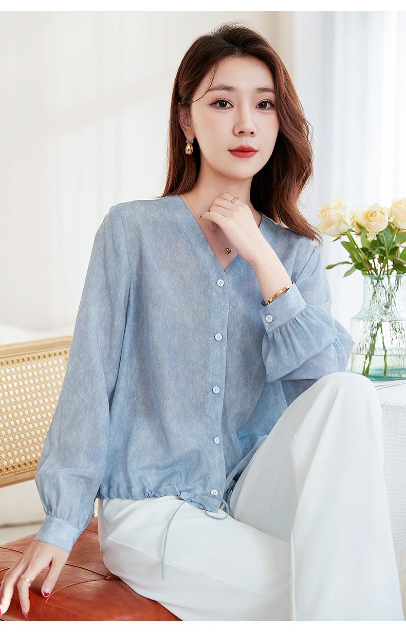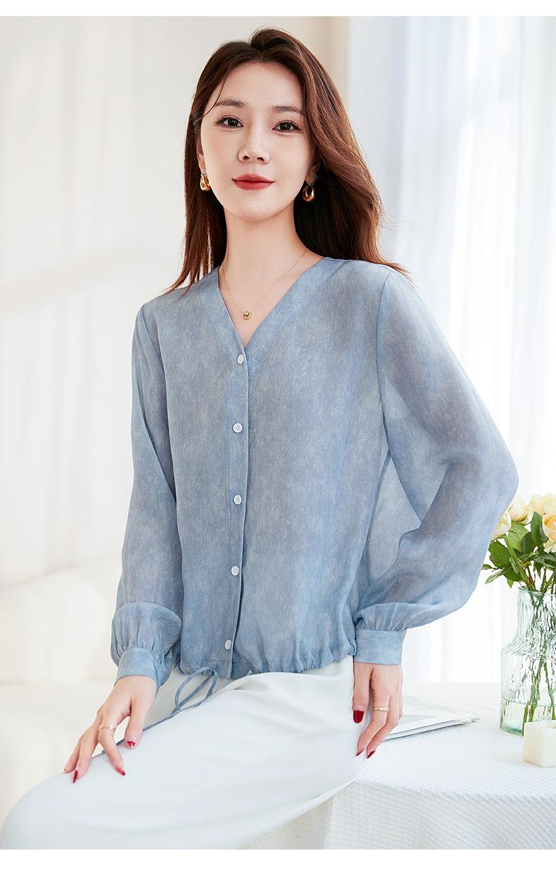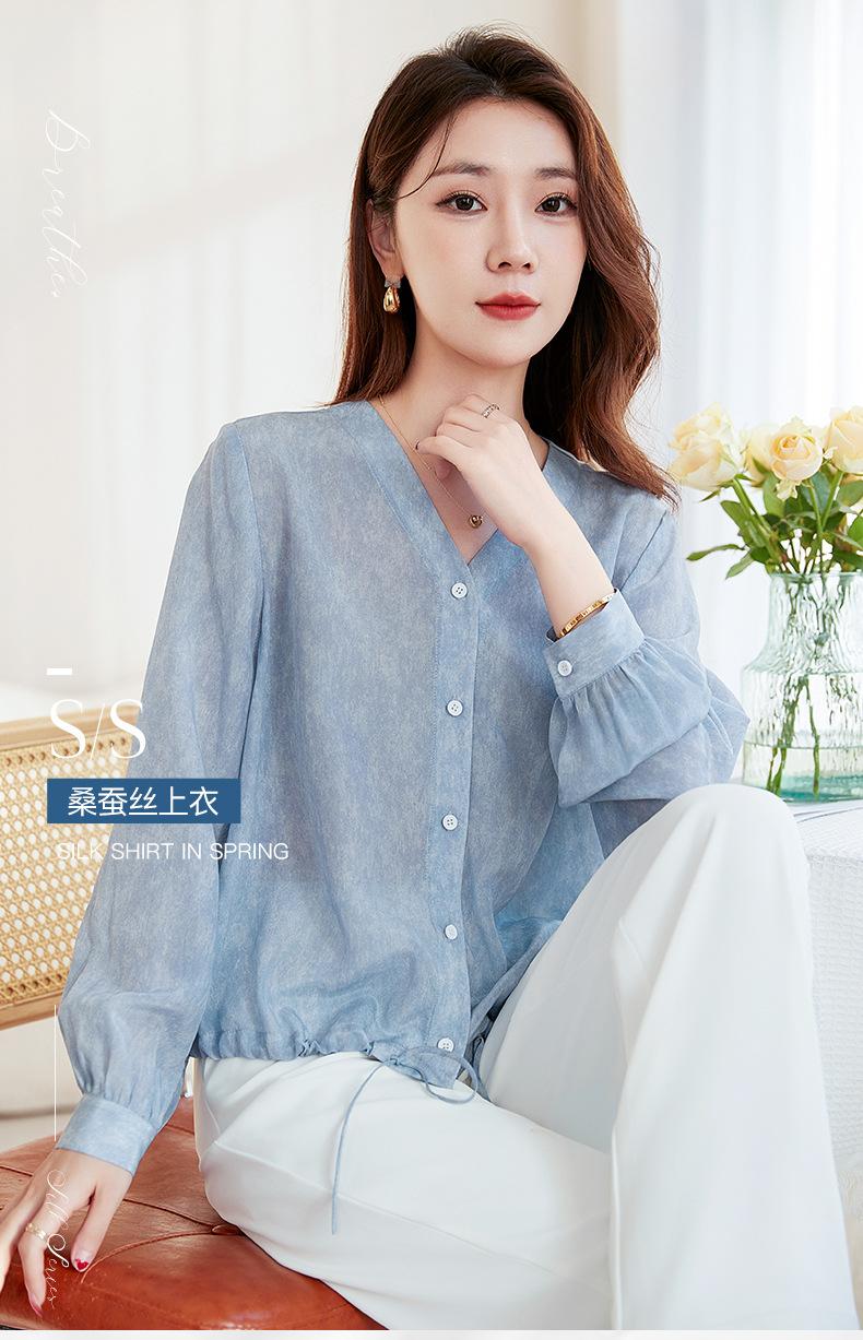 Ink Beauty Primavera y Verano Nueva Camisa de Seda con Cuello en V Seda de Morera Crepé de China Manga Larga Camisa para Ir al Trabajo Mujer 9658