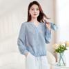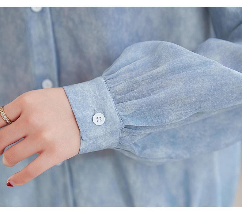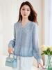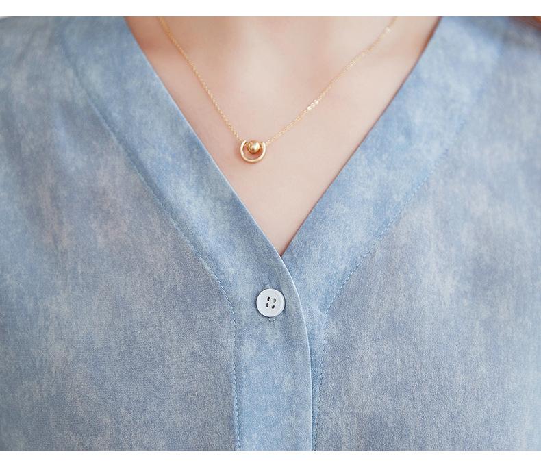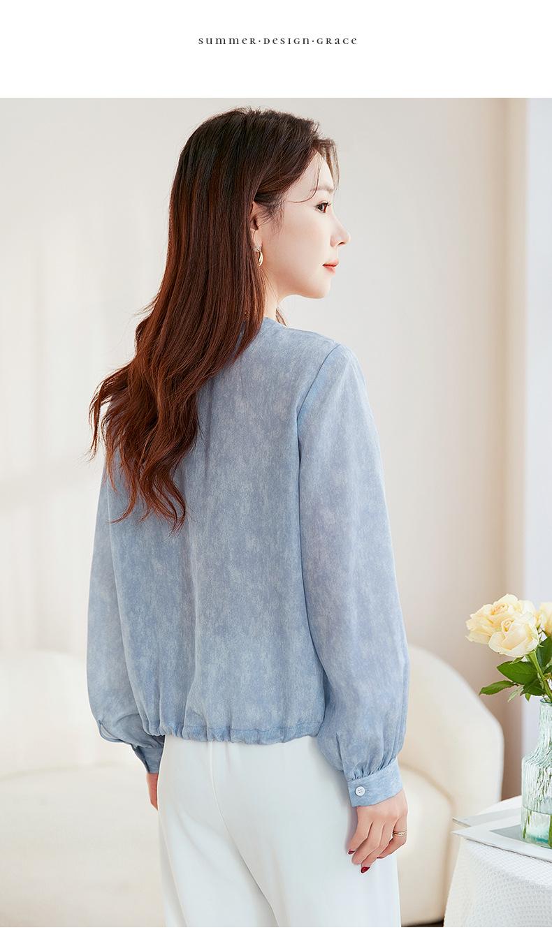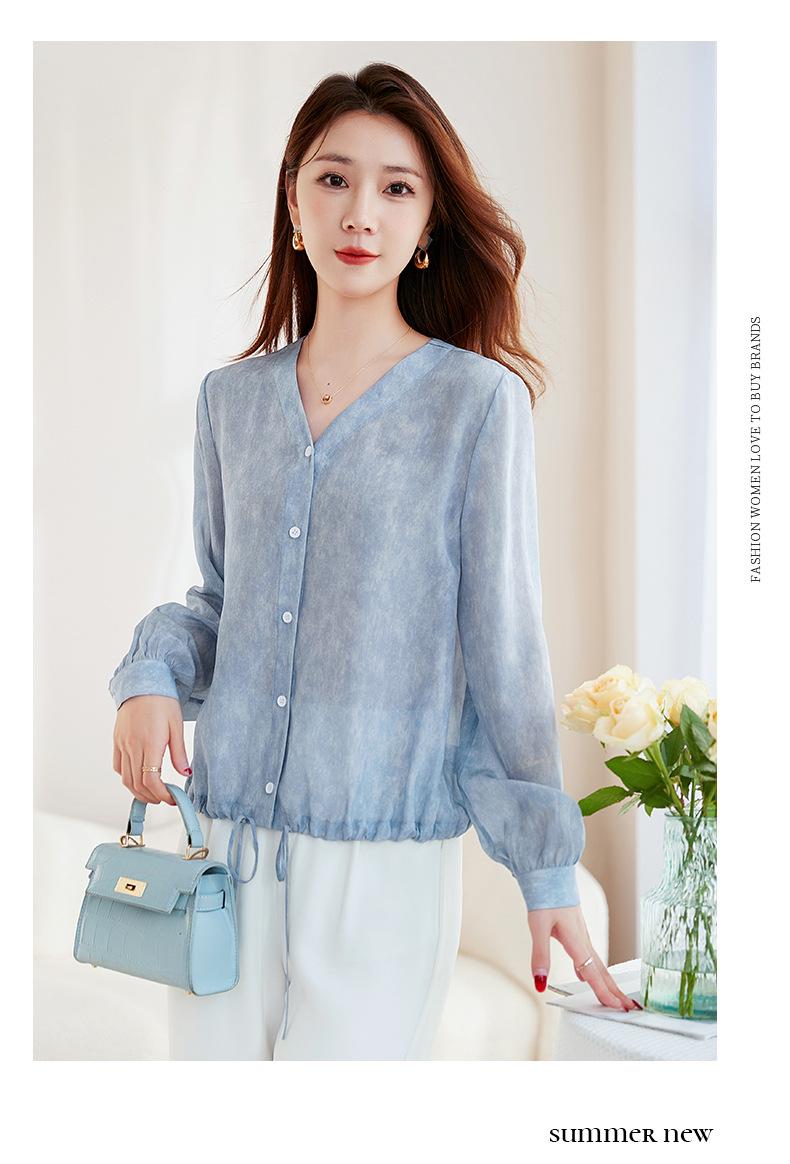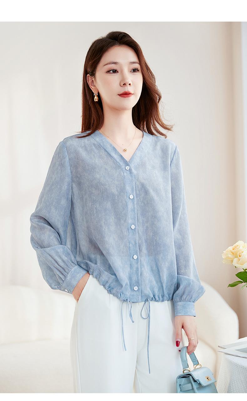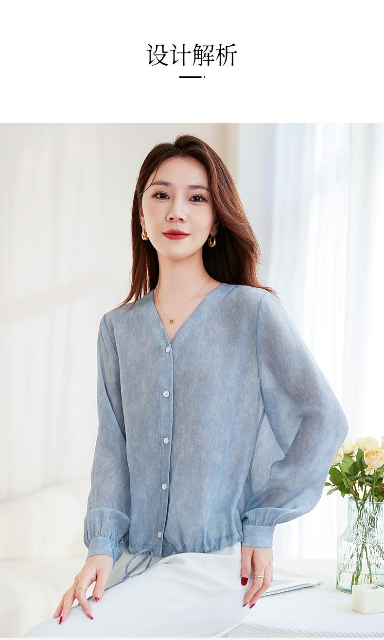 Ink Beauty Primavera y Verano Nueva Camisa de Seda con Cuello en V Seda de Morera Crepé de China Manga Larga Camisa para Ir al Trabajo Mujer 9658