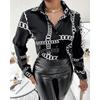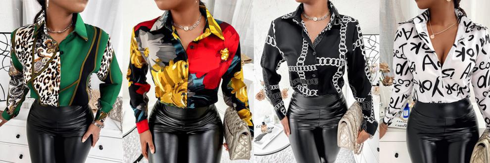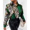 Camisa de mujer de moda europea y americana de primavera de comercio exterior transfronterizo, elegante camisa de manga larga con estampado de solapa para mujer