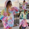 Otoño Transfronterizo Europeo y Americano Calle Comercio Exterior Nuevo Suéter Casual Holgado para Mujer con Capucha Estampado Tie-dye