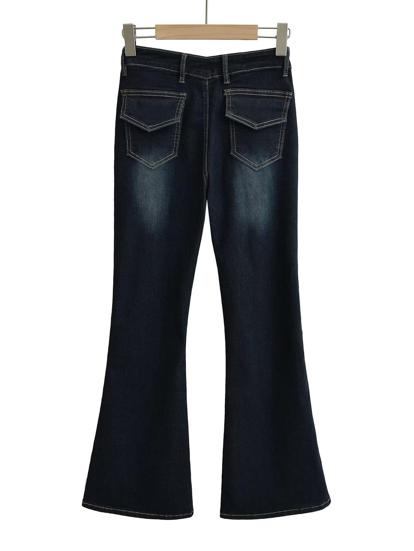 Pantalones vaqueros desgastados estilo americano para mujer, primavera 2024, nuevos Spice Girl, cintura alta, elásticos y adelgazantes, con corte en V