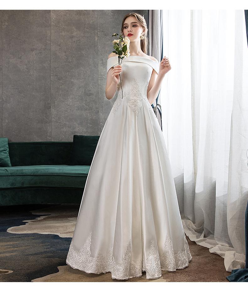 Vestido de Novia Ligero de Satén de un Hombro 2025 Nuevo Novia Blanco Sencillo Largo hasta el Suelo Vestido de Novia Pequeño para Fotografía de Viaje