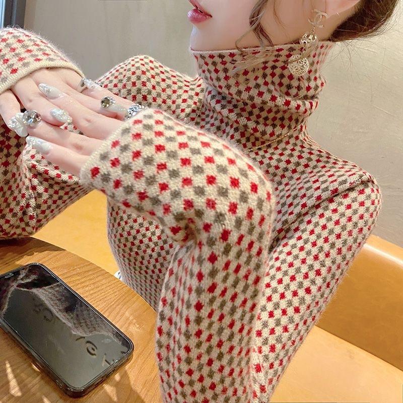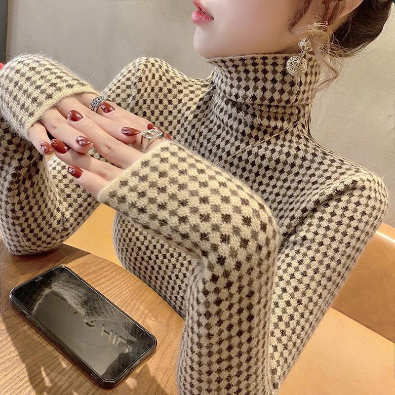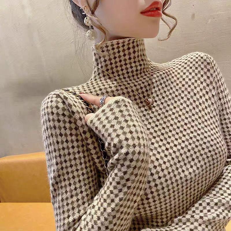 Nuevo Estilo Europeo Otoño e Invierno Cuello Alto Tejido Grueso Ajustado Top de Fondo para Mujer con Suéter Interior