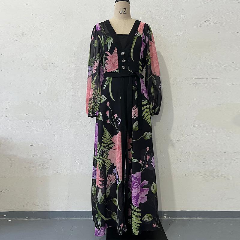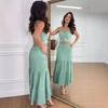 Vestido de mujer de manga larga con personalidad de moda europea y americana de Amazon 2024, conjunto de dos piezas con tirantes