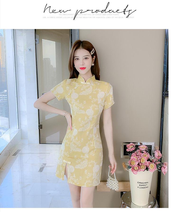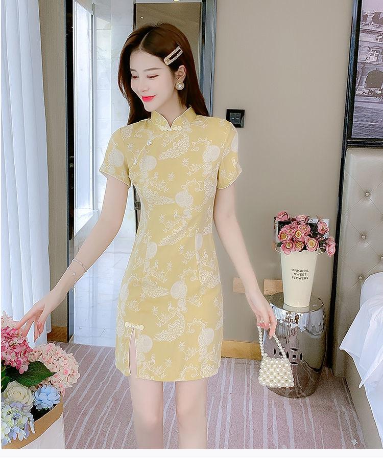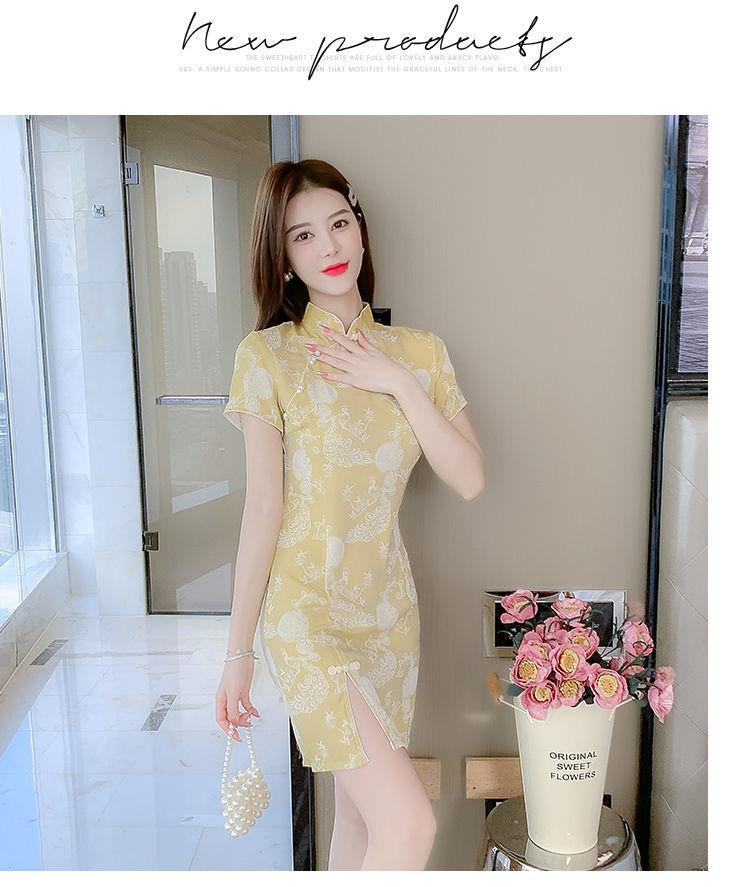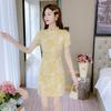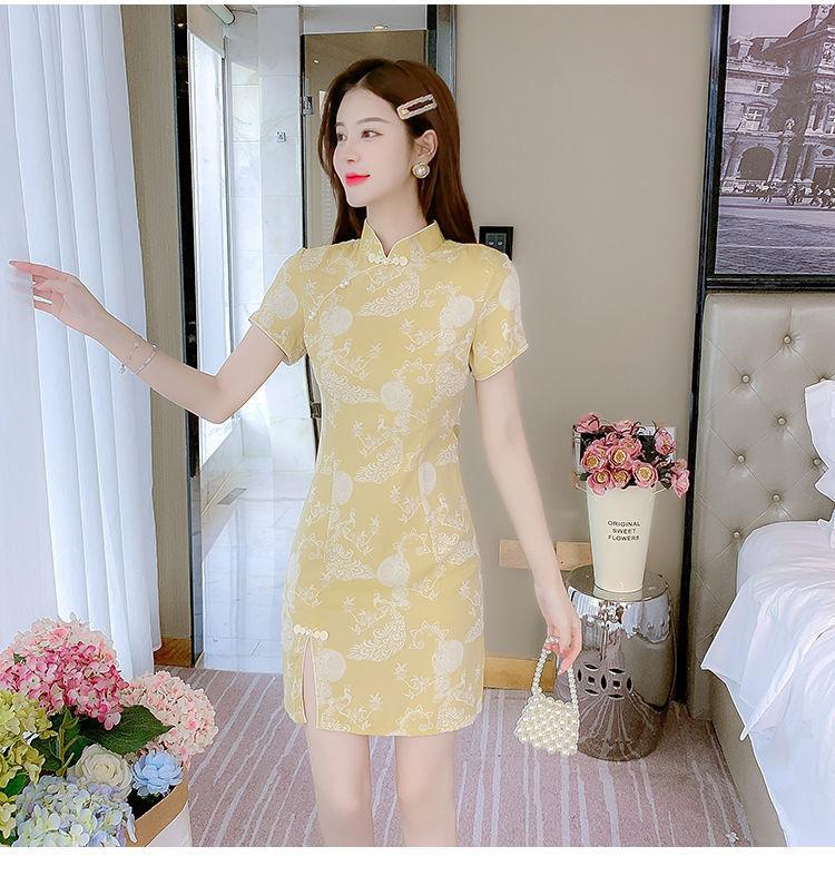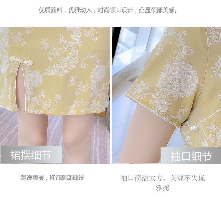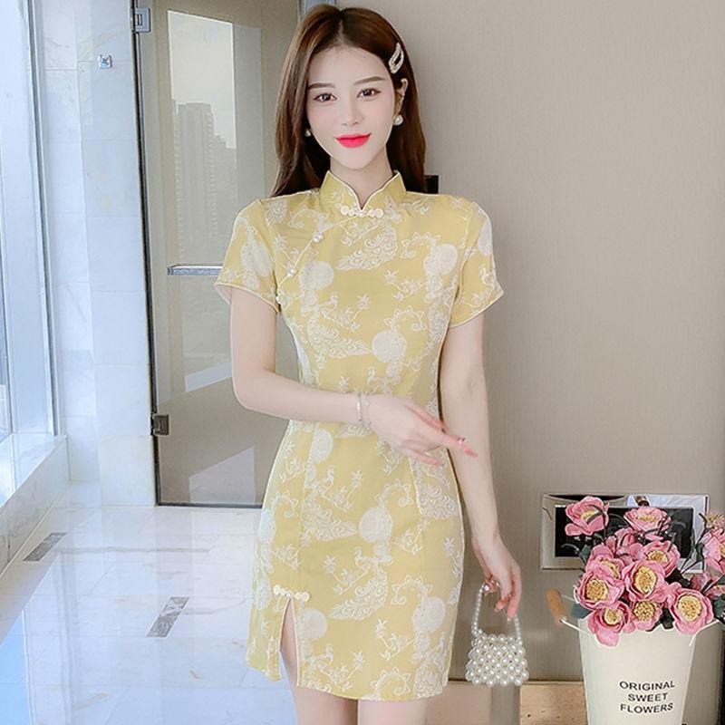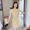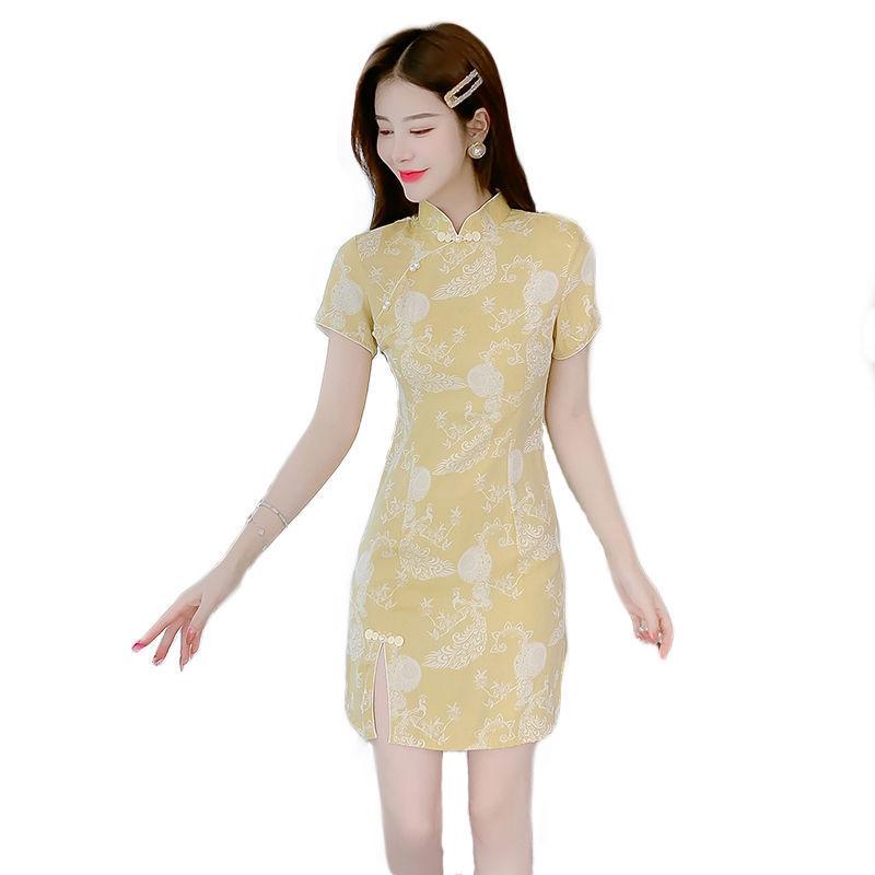 Cheongsam Mejorado 2022 Verano Nuevo Estilo Joven Pequeño Corto Amarillo Retro Estilo Nacional Vestido para Mujer