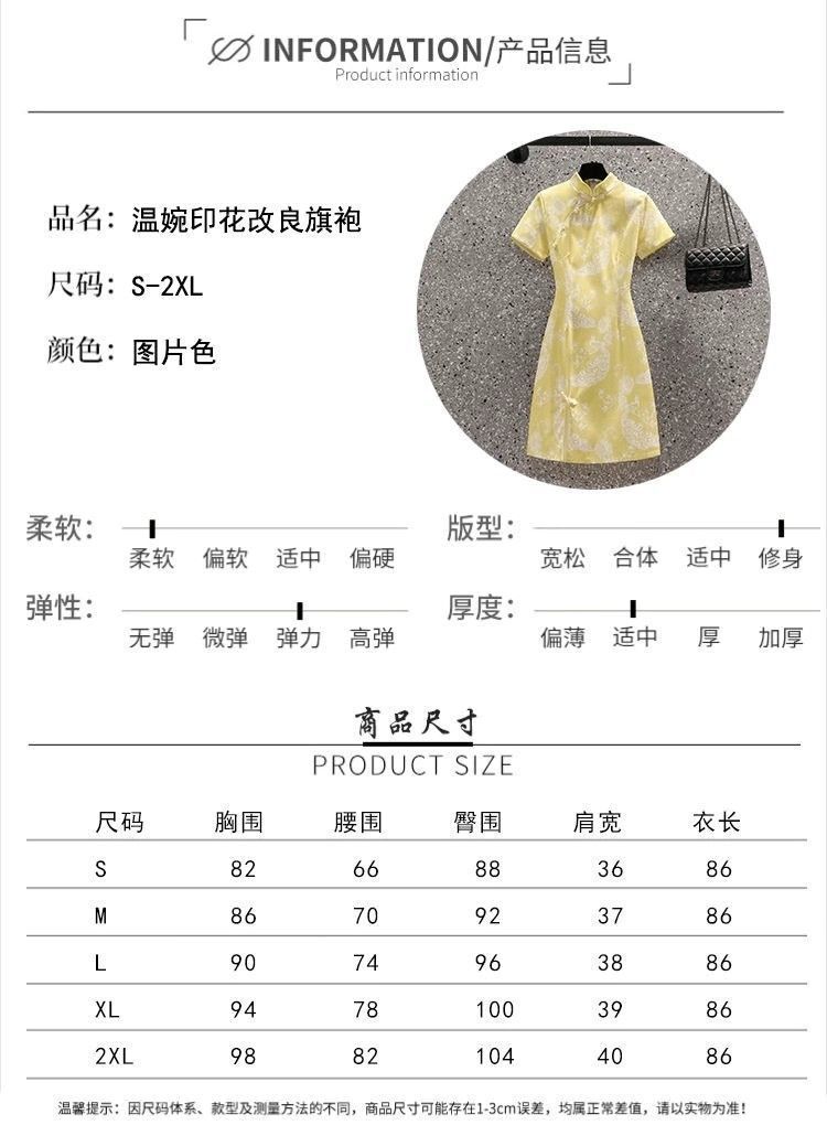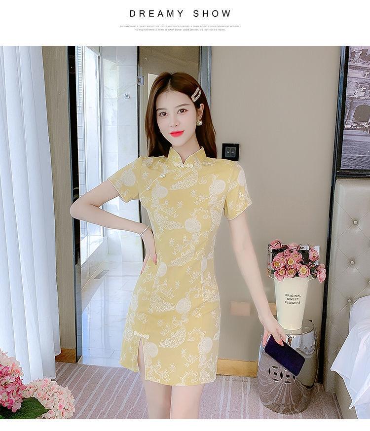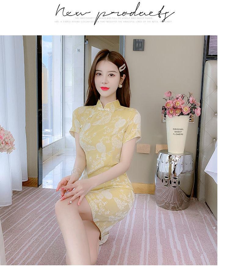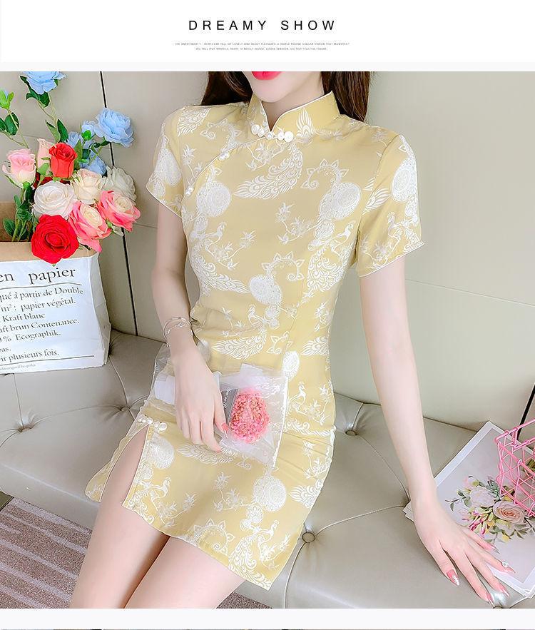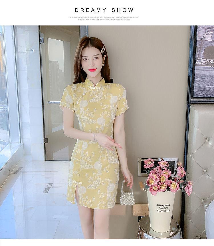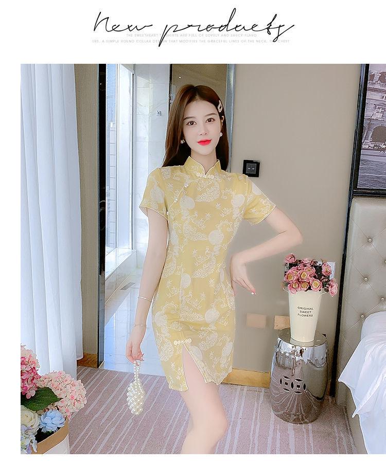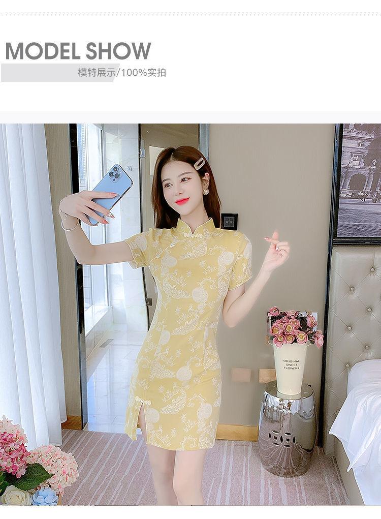 Cheongsam Mejorado 2022 Verano Nuevo Estilo Joven Pequeño Corto Amarillo Retro Estilo Nacional Vestido para Mujer