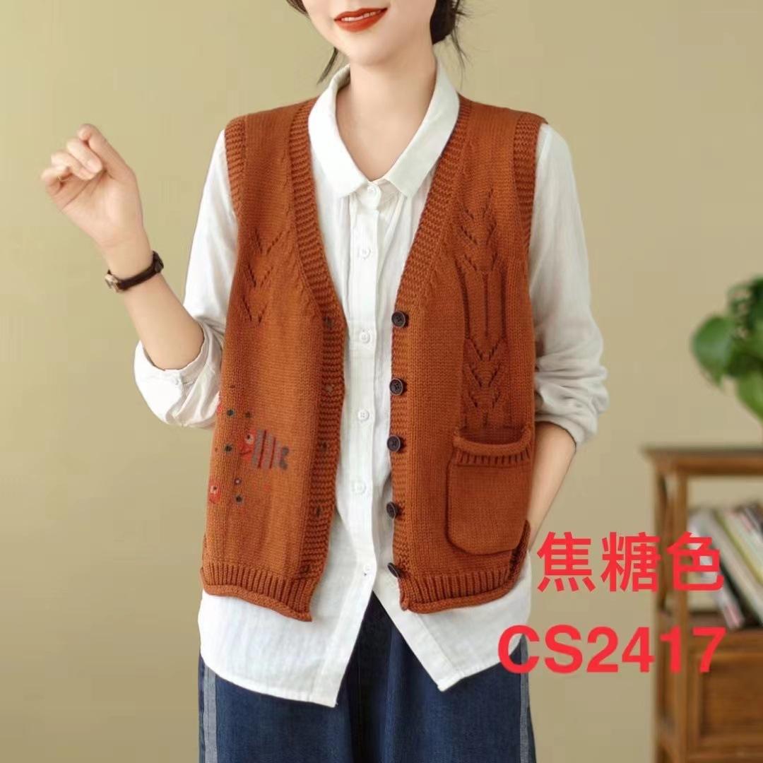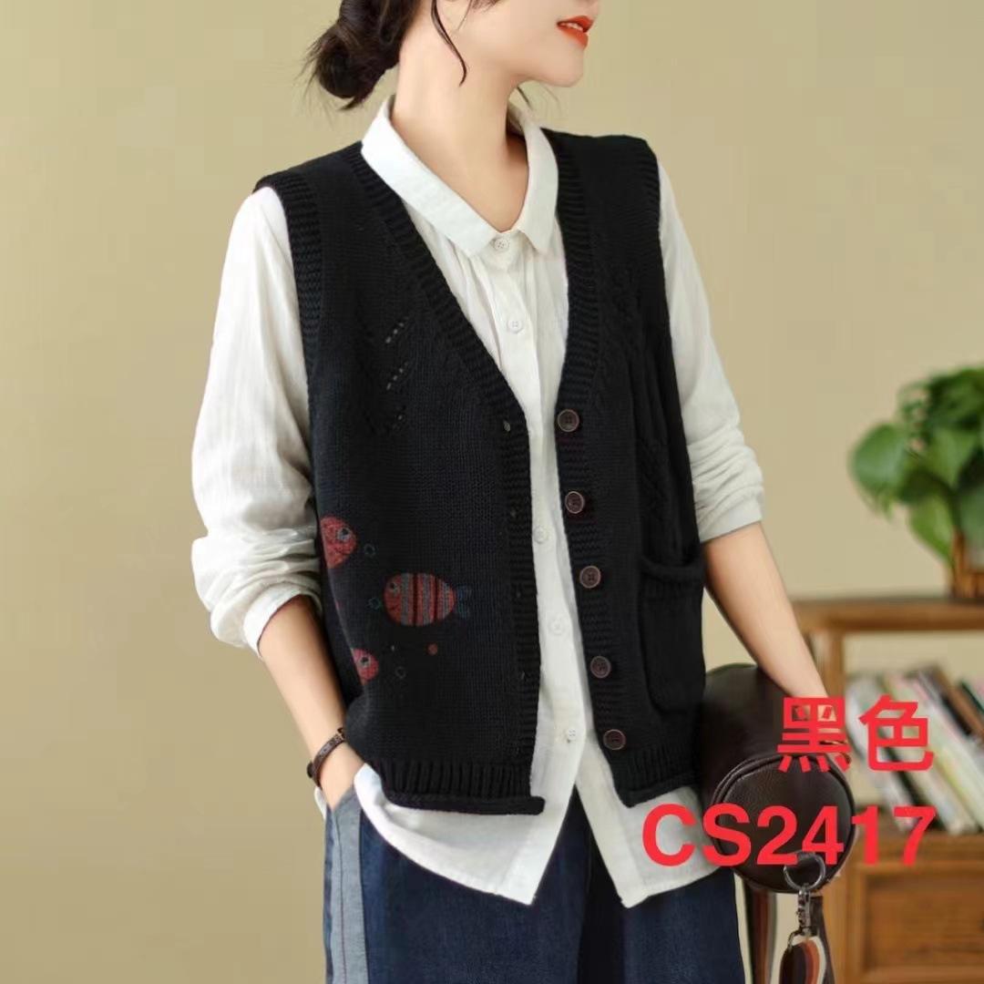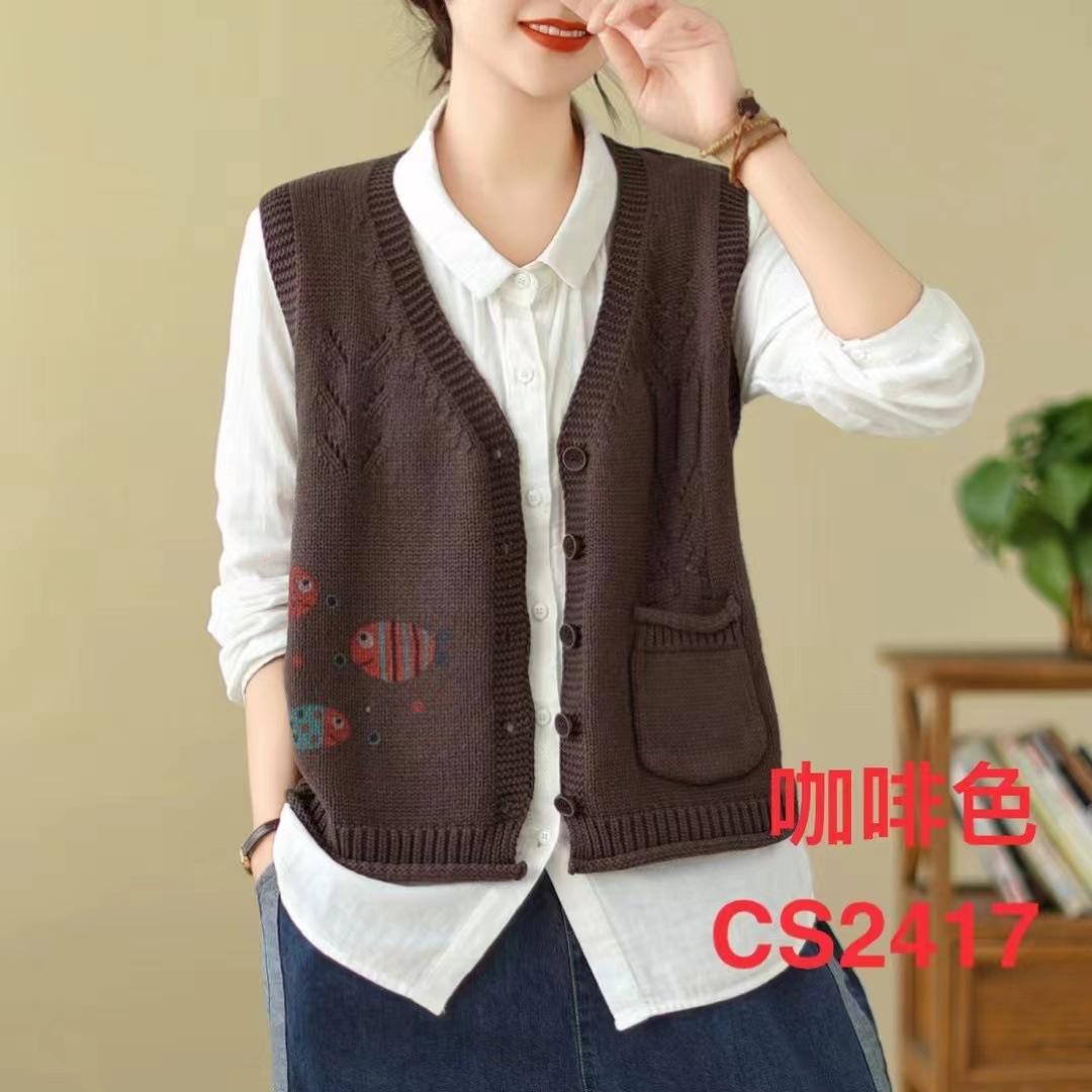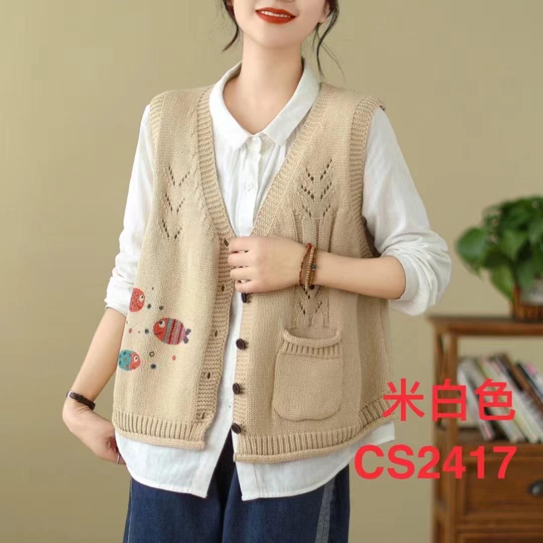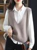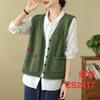Cárdigan de punto de algodón de estilo artístico para mujer, chaleco primavera 2024 Nuevo versátil estilo occidental cuello en V sin mangas suéter chaleco