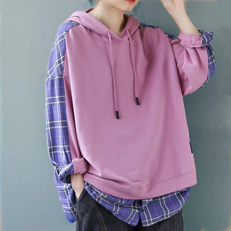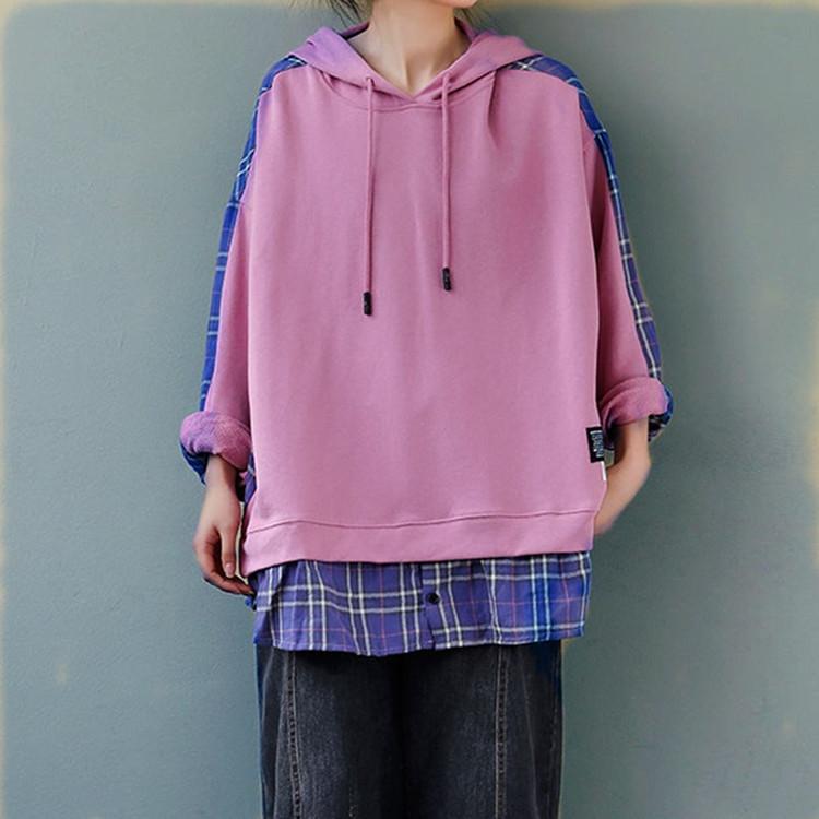 Sudadera Holgada para Mujer Estilo K 2025 Nueva Primavera y Otoño Delgada Manga Larga con Capucha Moda Top de Dos Piezas Falso Tendencia Ins para Mujer