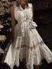 Elegante elegante primavera 2024 nuevo vestido de mujer de cintura alta con volantes y encaje sin mangas con cuello en V y costuras