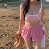 Traje de baño de estilo coreano 2024, nuevo, de color sólido, sin espalda, bikini sexy con tirantes para mujer, bikini para playa y vacaciones.