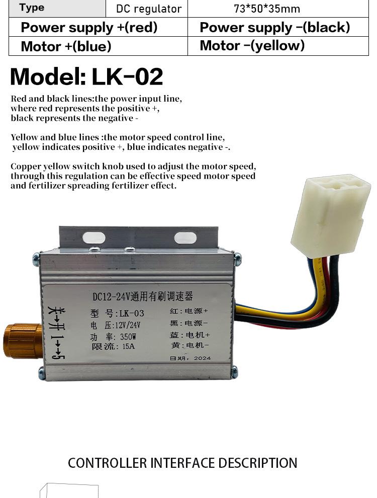 Antelope 12/24V350W es adecuado para maquinaria agrícola esparcidor de fertilizante extrusora controlador de escobillas gobernador LK-02