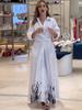 Ropa de mujer transfronteriza europea y americana, verano 2025, nuevo cárdigan estampado de posicionamiento, vestido camisero con tirantes en la cintura y temperamento
