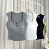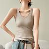Chaleco de verano 2021, estilo retro europeo y americano, con escote en V pequeño, ajustado, sin mangas, de color liso