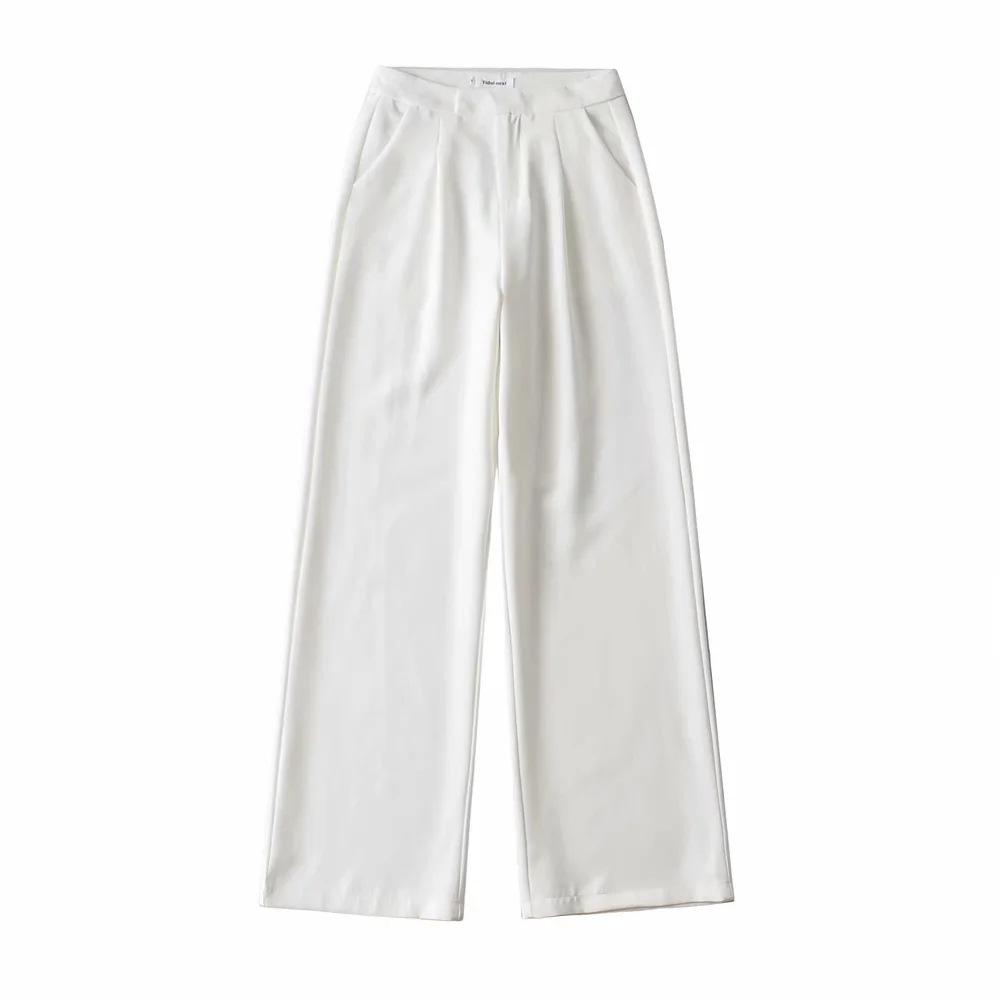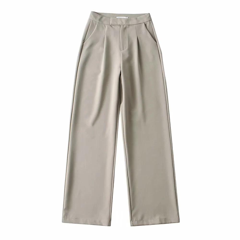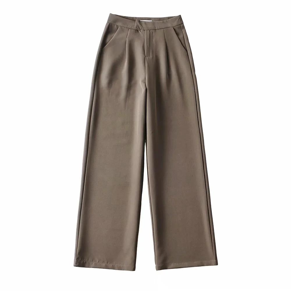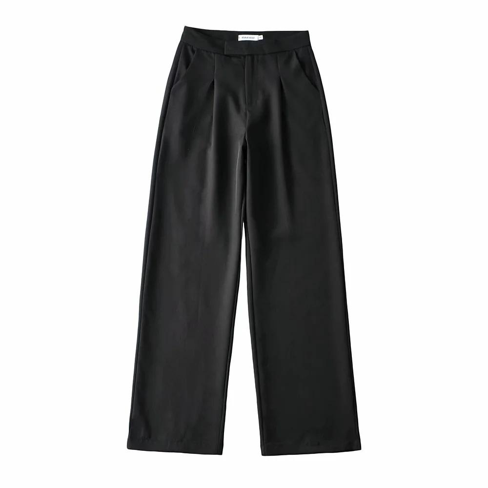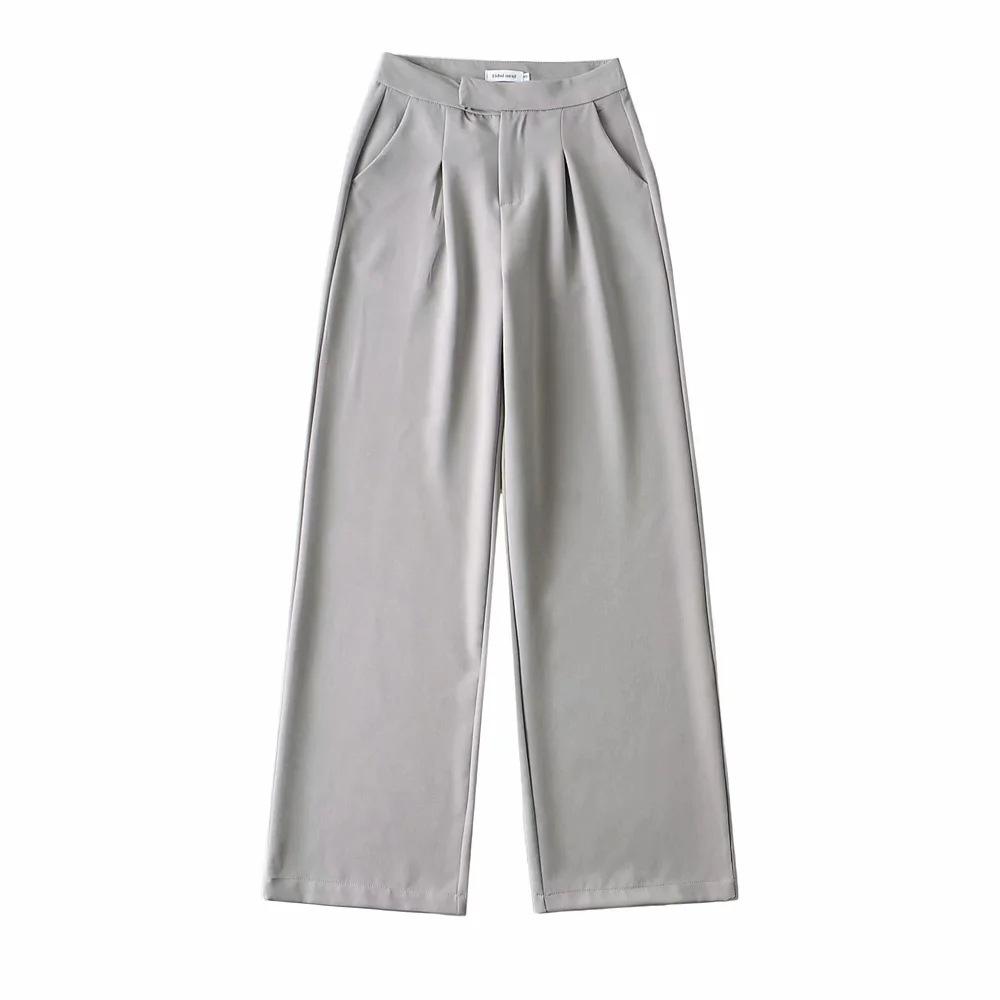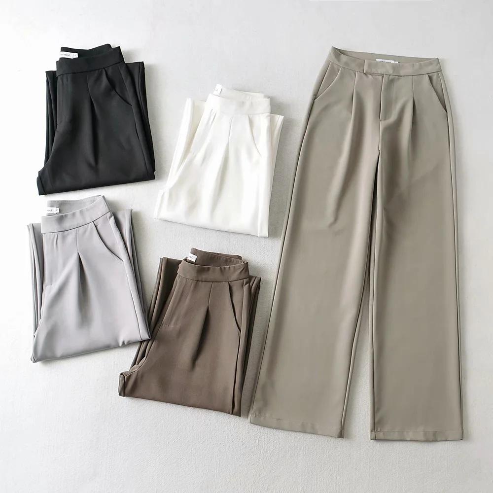 Pantalones drapeados de cintura alta estilo coreano chic para mujer, pantalones casuales rectos y sueltos de gasa fina, pantalones anchos adelgazantes