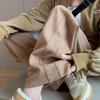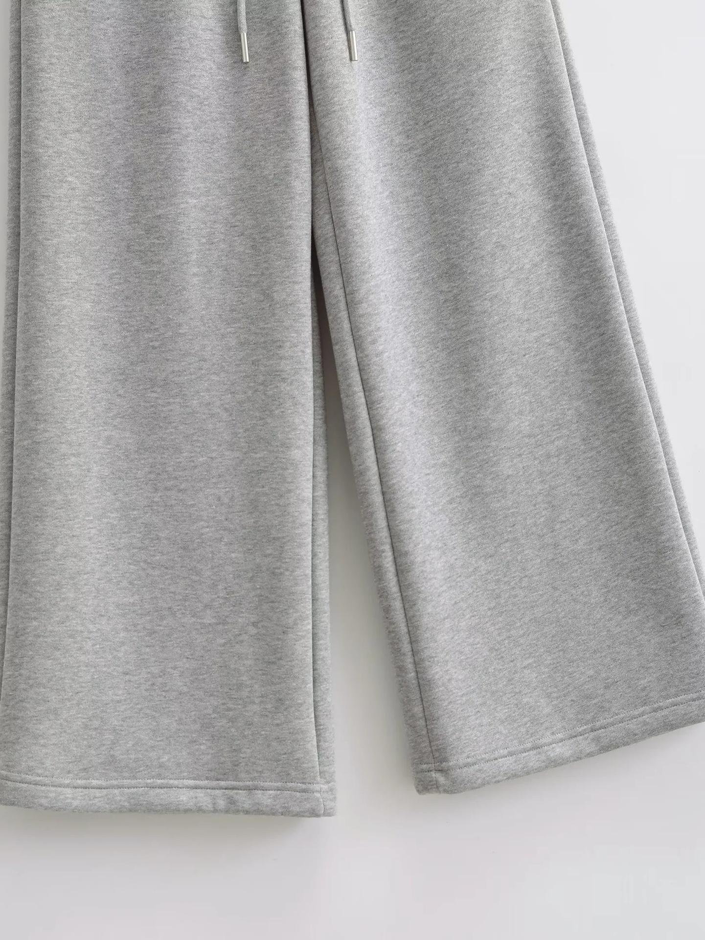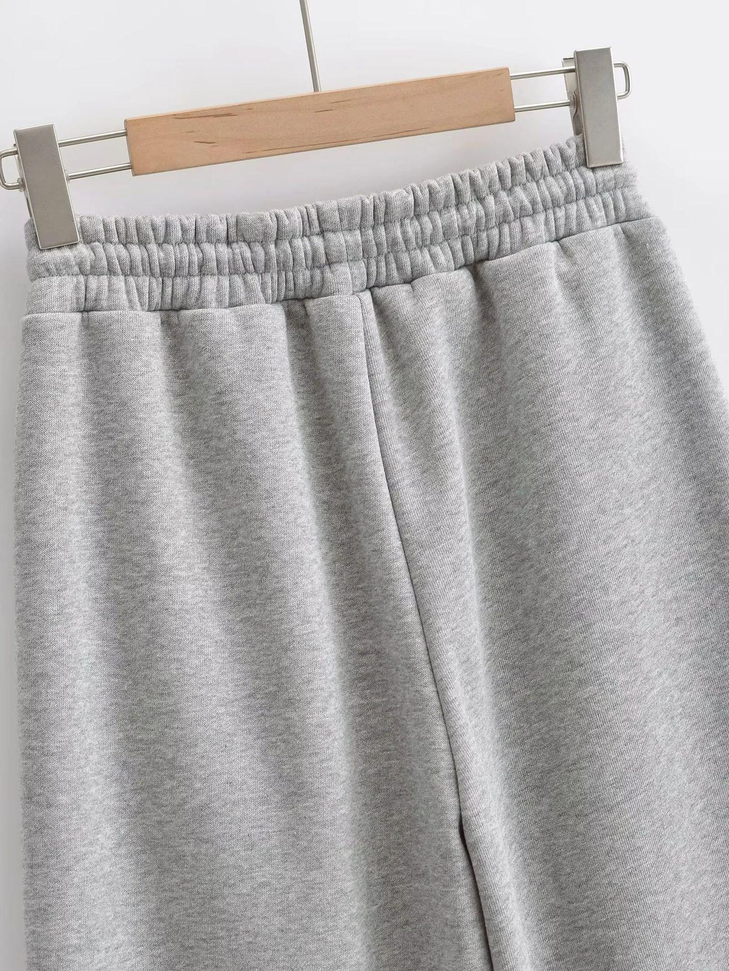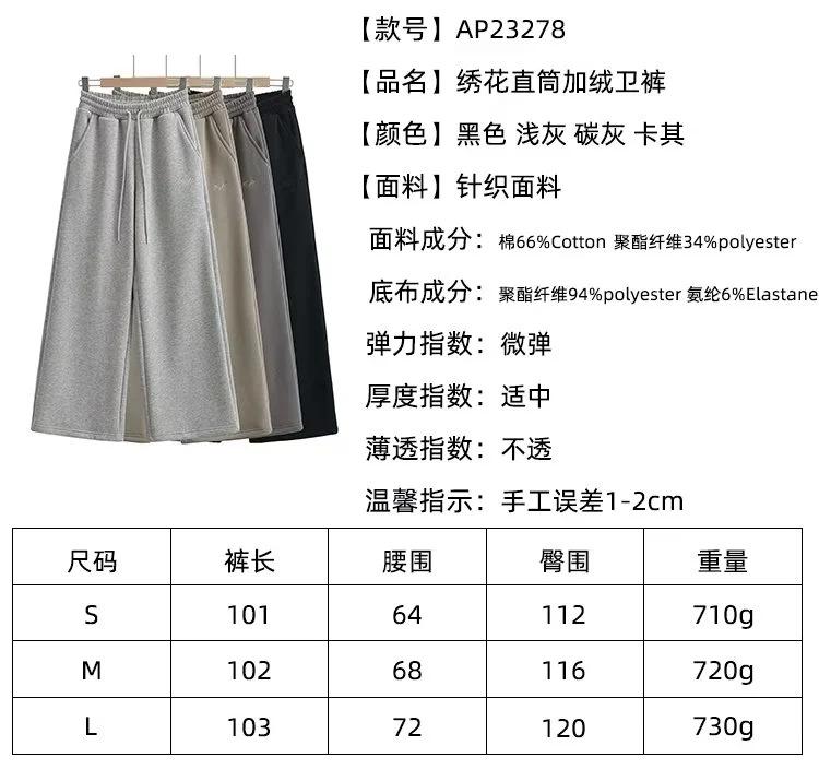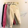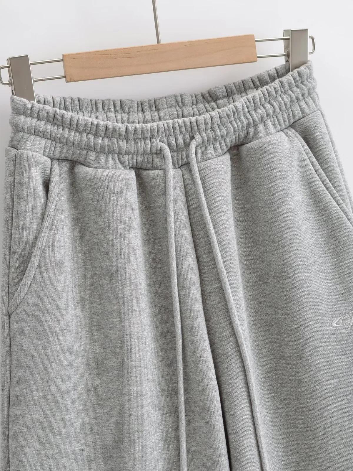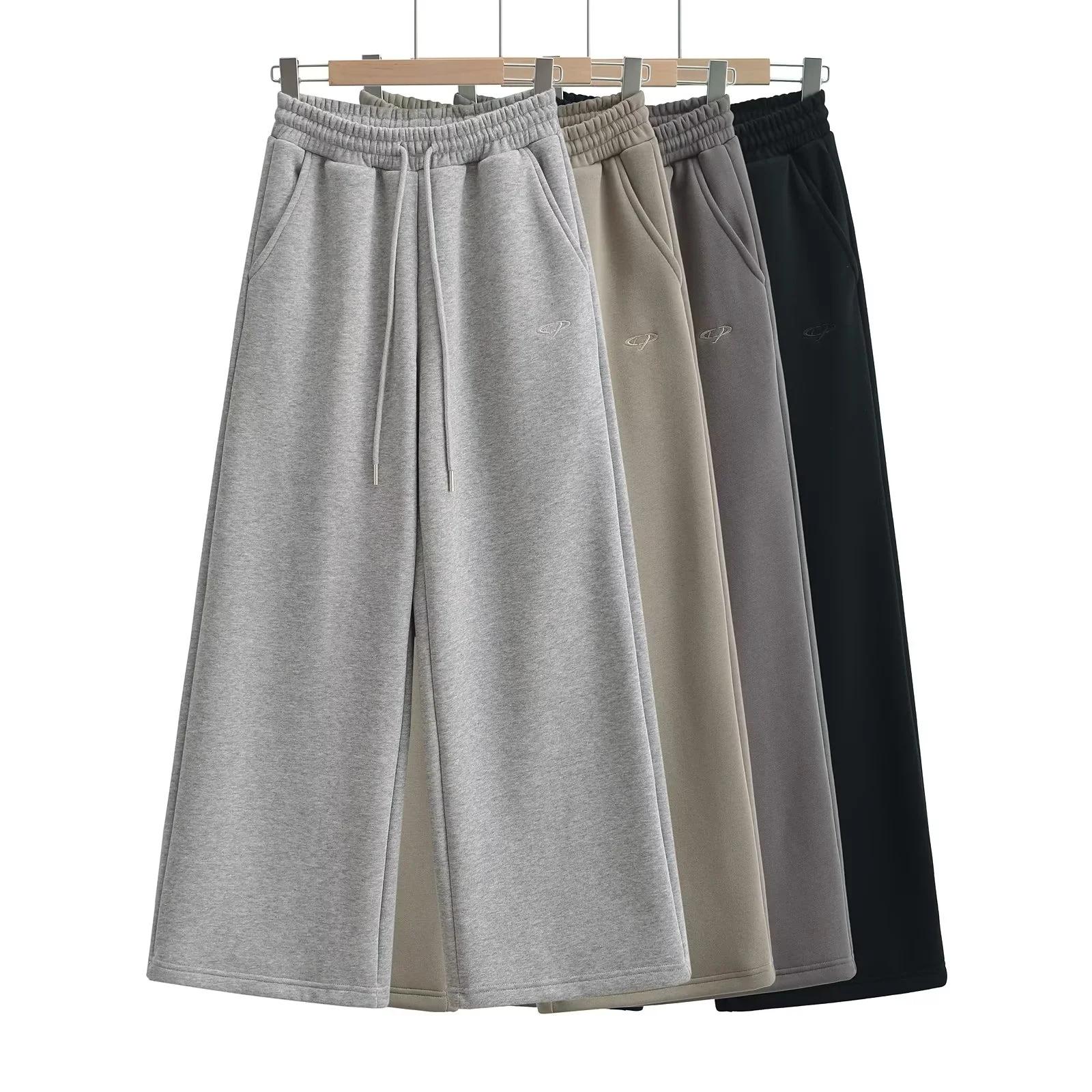 Pantalones casuales de chándal de otoño e invierno europeos y americanos gruesos con forro polar a la moda de cintura alta sueltos de pierna ancha para mujer con cordón bordado de letras