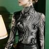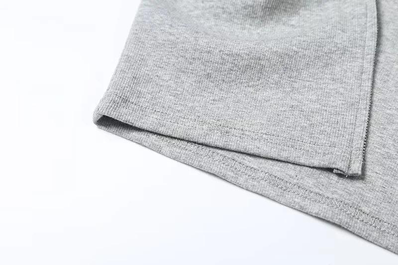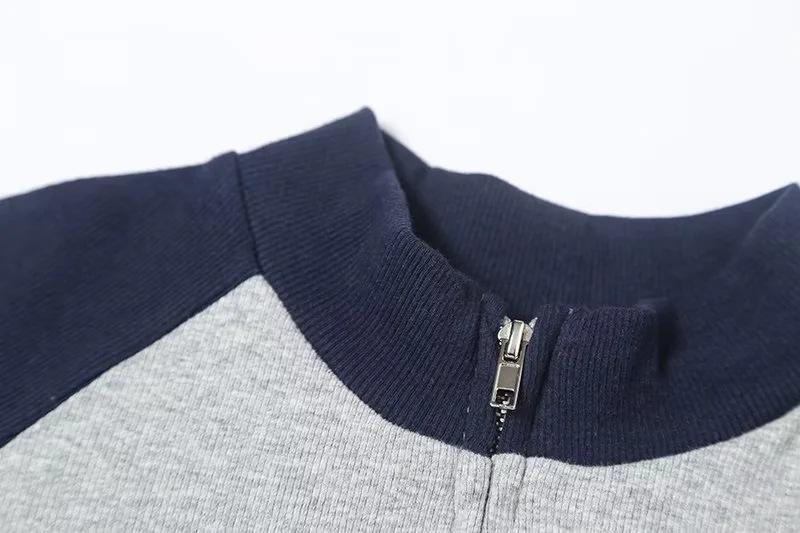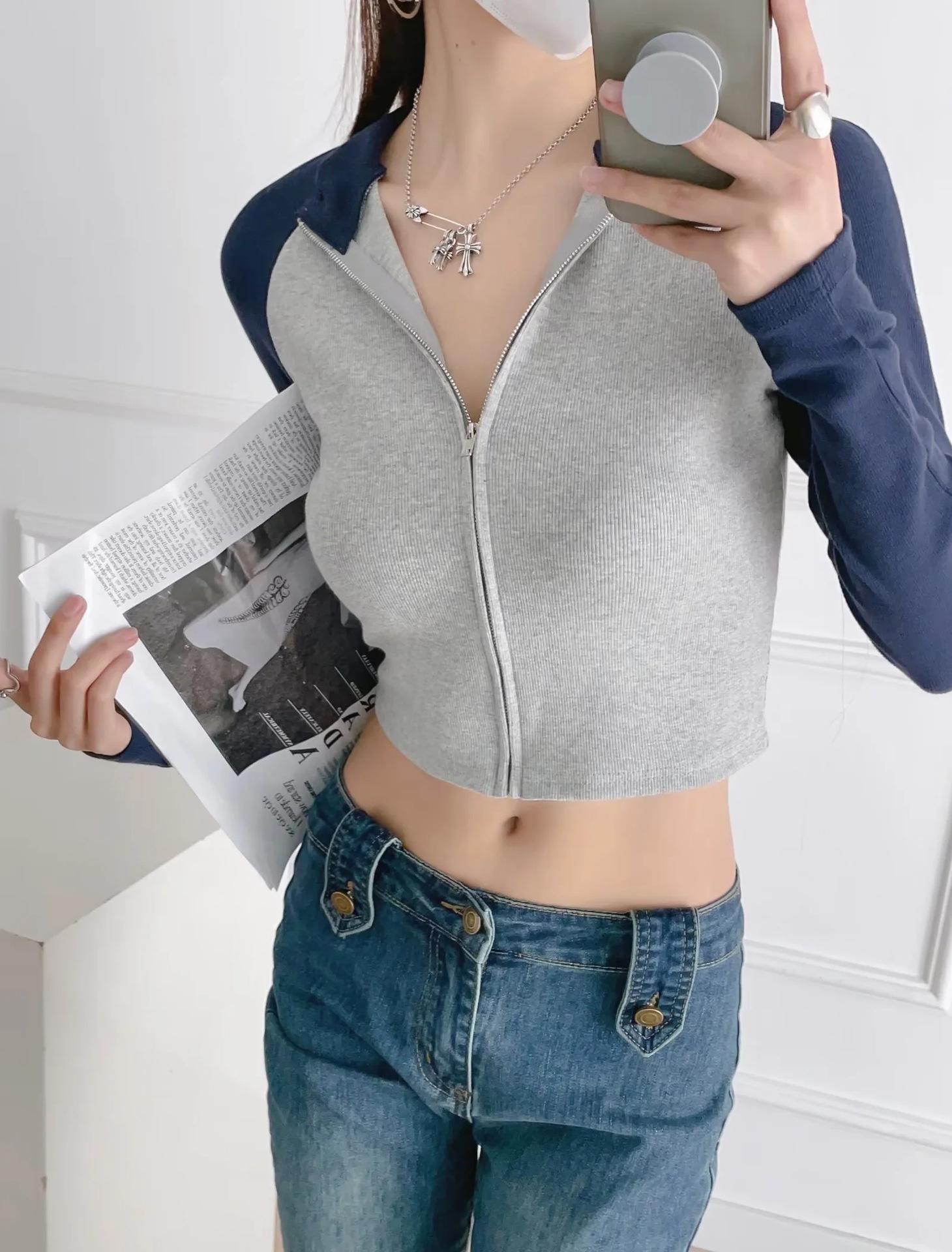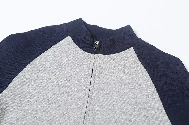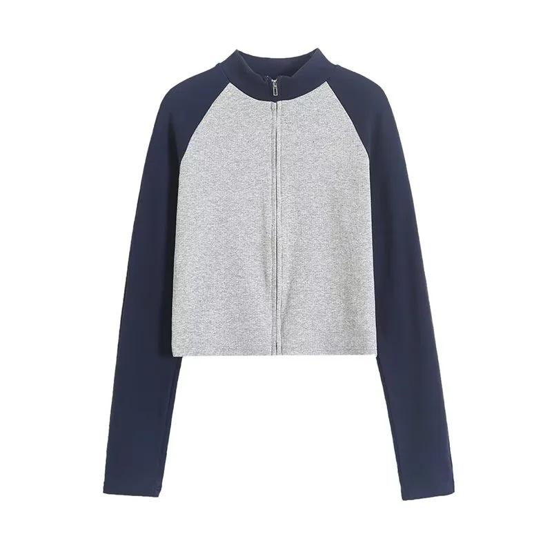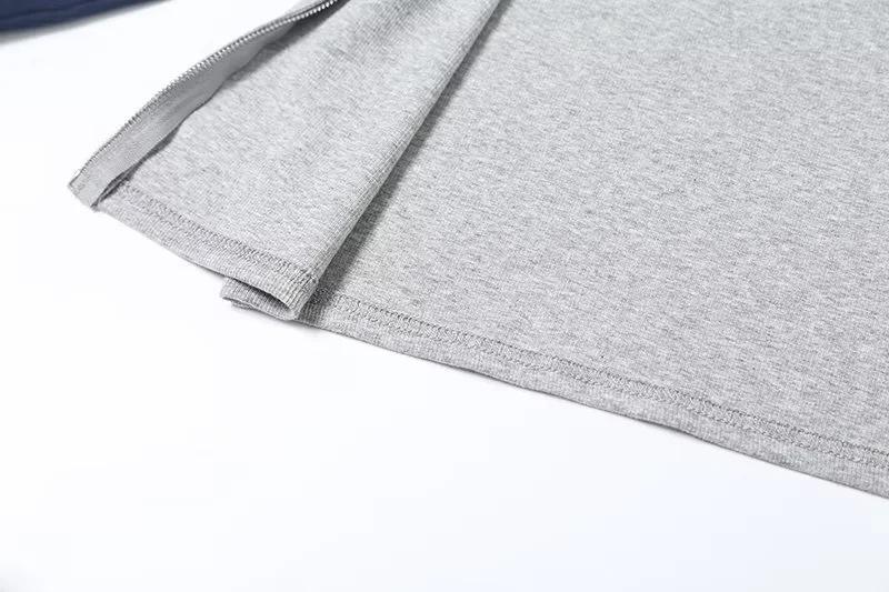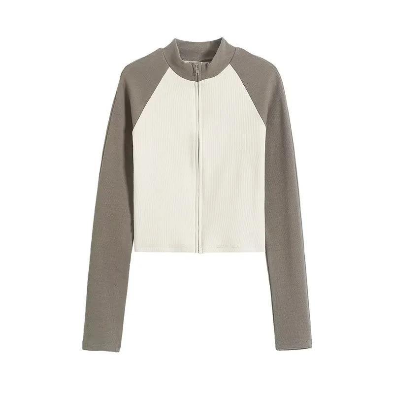 Ropa de mujer de estilo europeo y americano, nueva camiseta de 2022 con costuras de color en contraste y cremallera en la parte inferior, cuello alto medio, camiseta ajustada de celebridad de Internet