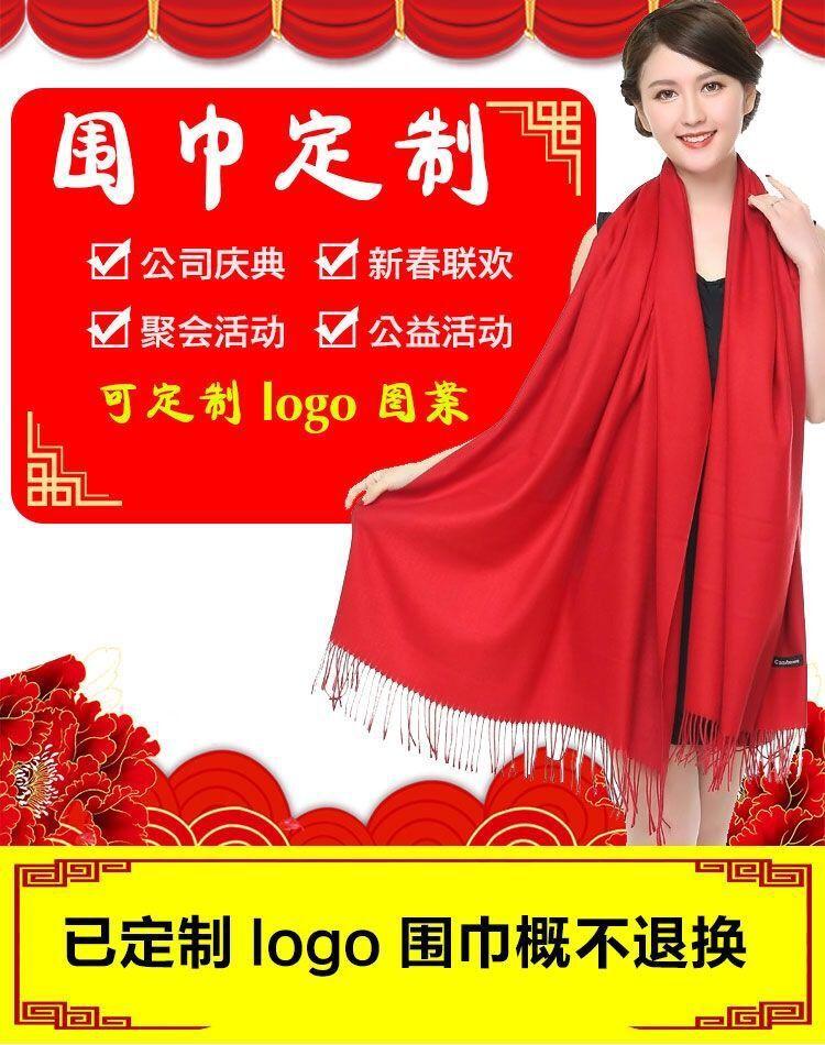 Bufanda de cachemira con borlas de imitación de cachemira de color puro, popular para otoño e invierno, chal cálido, regalo rojo para reuniones anuales, logotipo personalizado