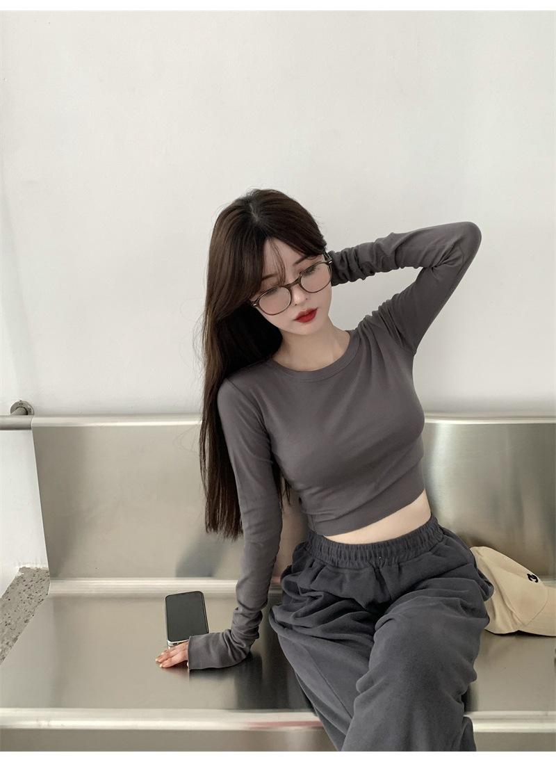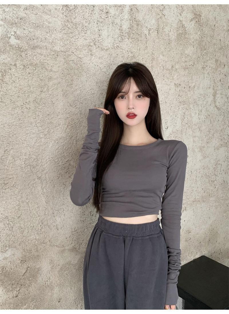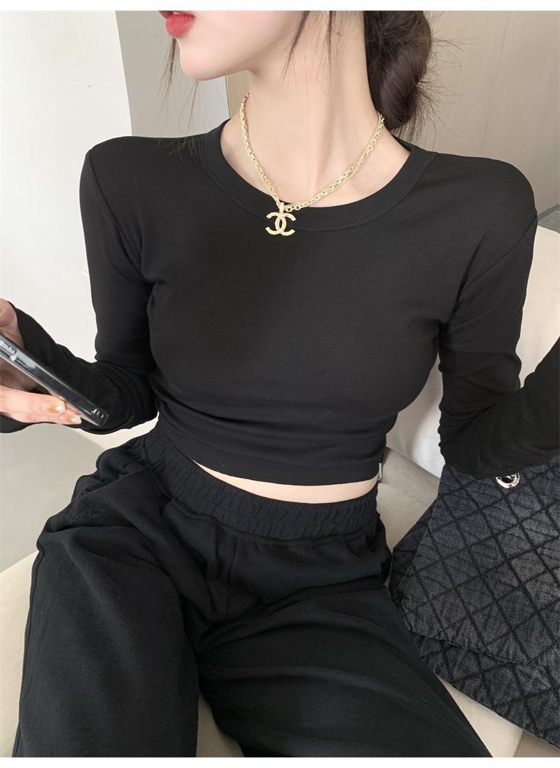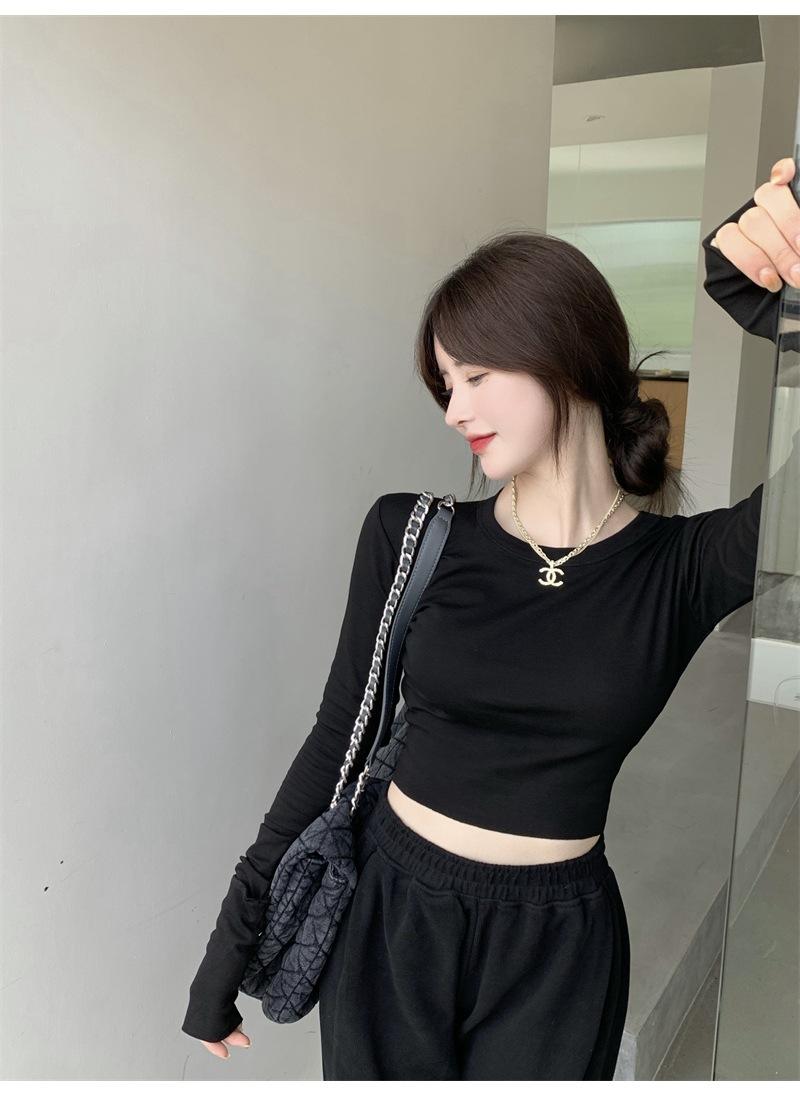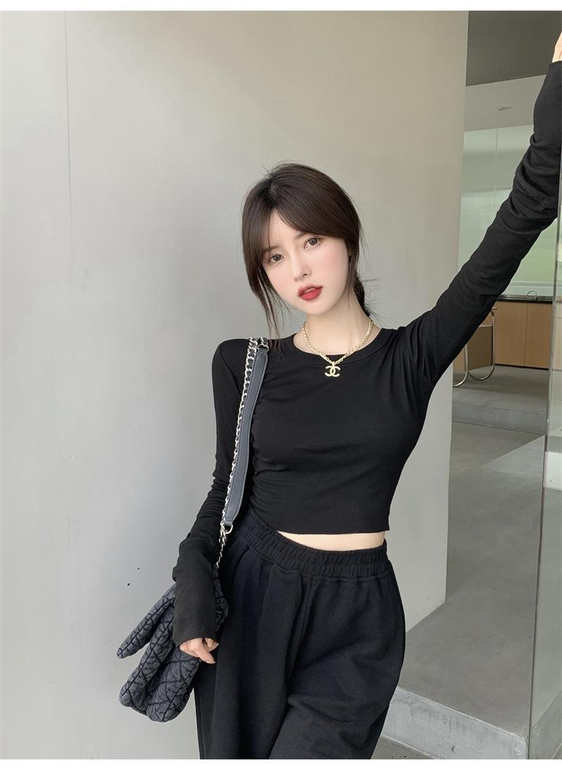 Camiseta de cintura alta hasta el ombligo para mujer, camiseta interior ajustada y adelgazante de otoño, top versátil de manga larga, moda transfronteriza
