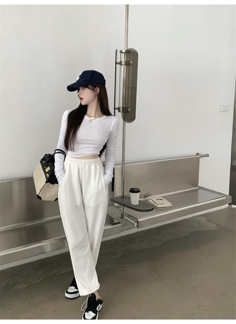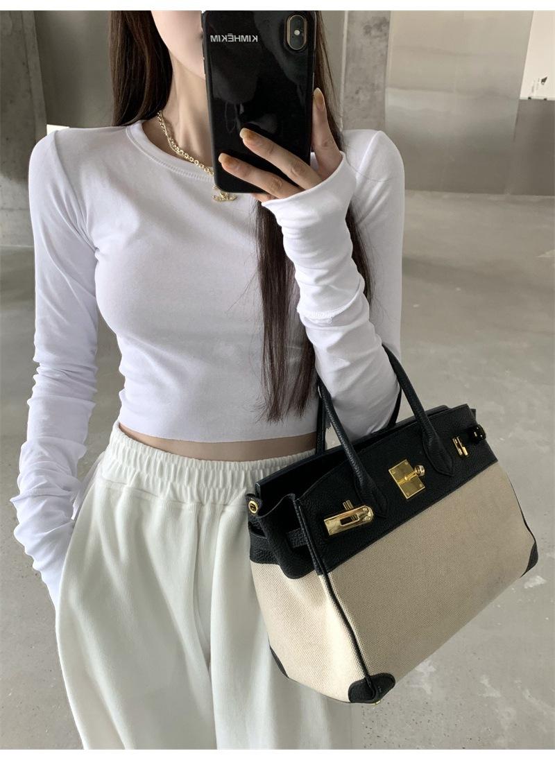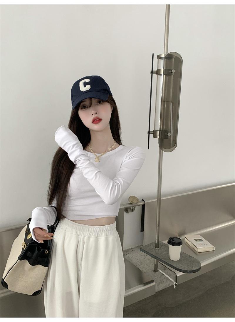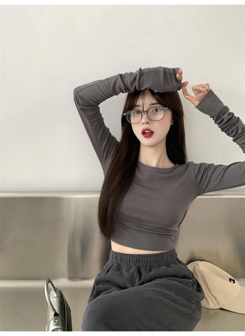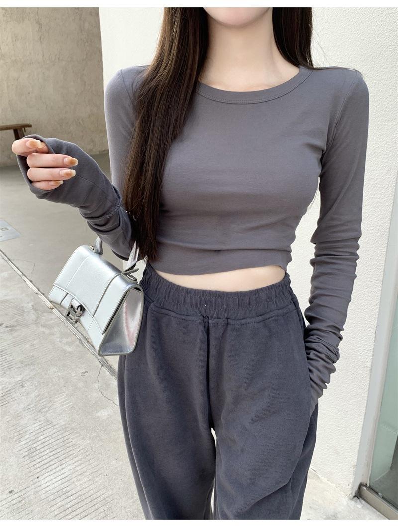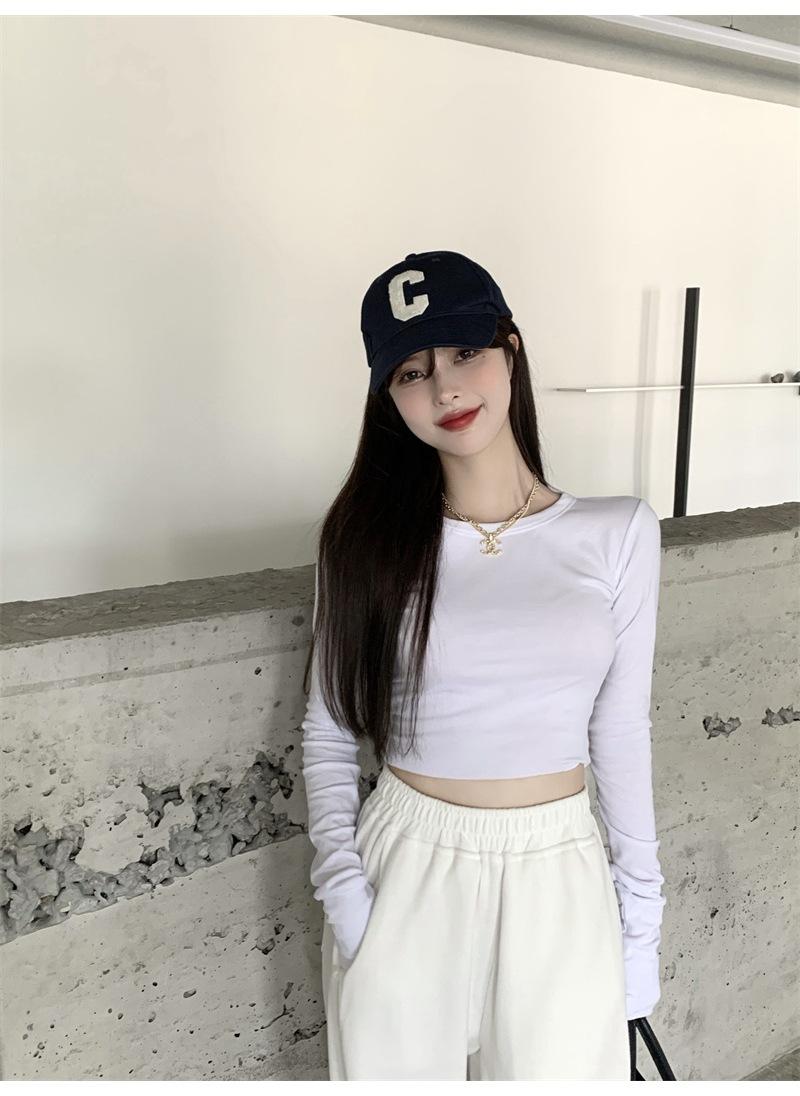 Camiseta de cintura alta hasta el ombligo para mujer, camiseta interior ajustada y adelgazante de otoño, top versátil de manga larga, moda transfronteriza