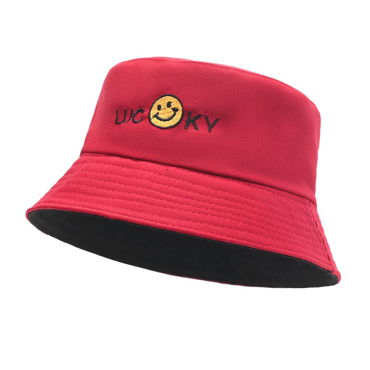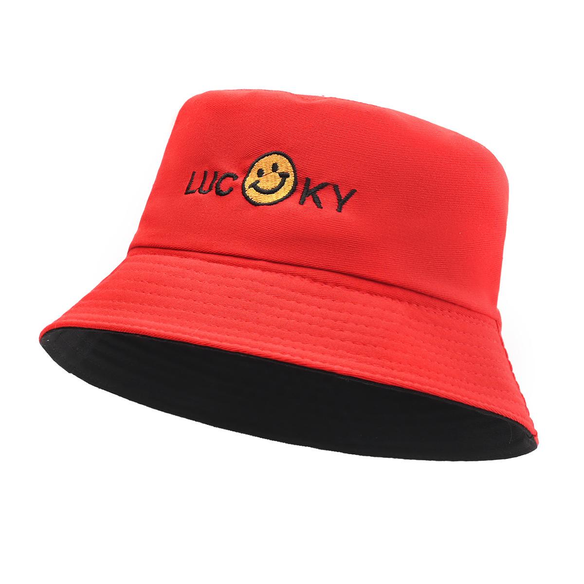Sombrero de pescador de doble cara transfronterizo Primavera y verano para hombre y mujer Japonés Bordado Cara sonriente Protector solar Sombrilla Sombrero de cubo Sombrero para el sol para exteriores Marea
