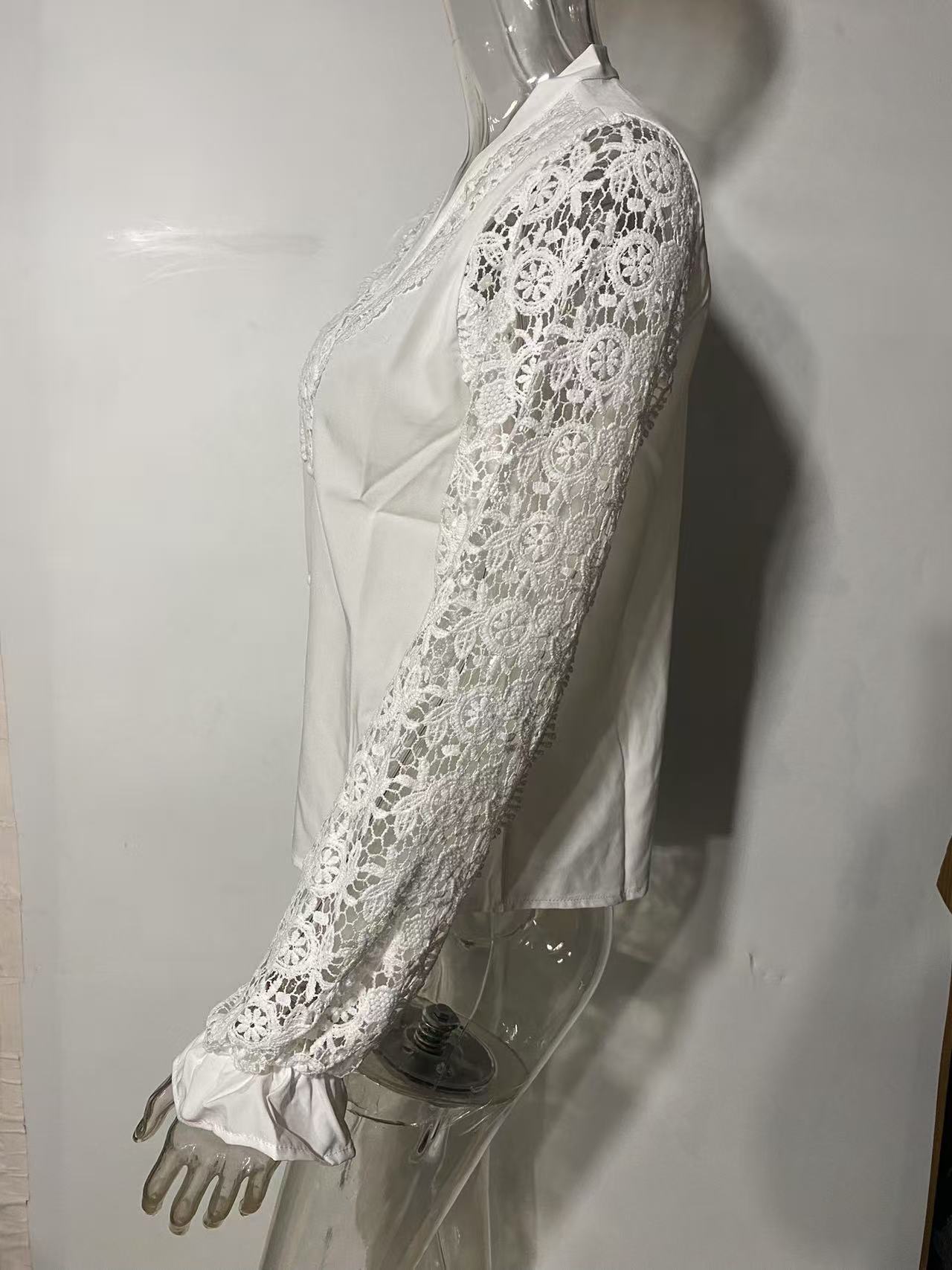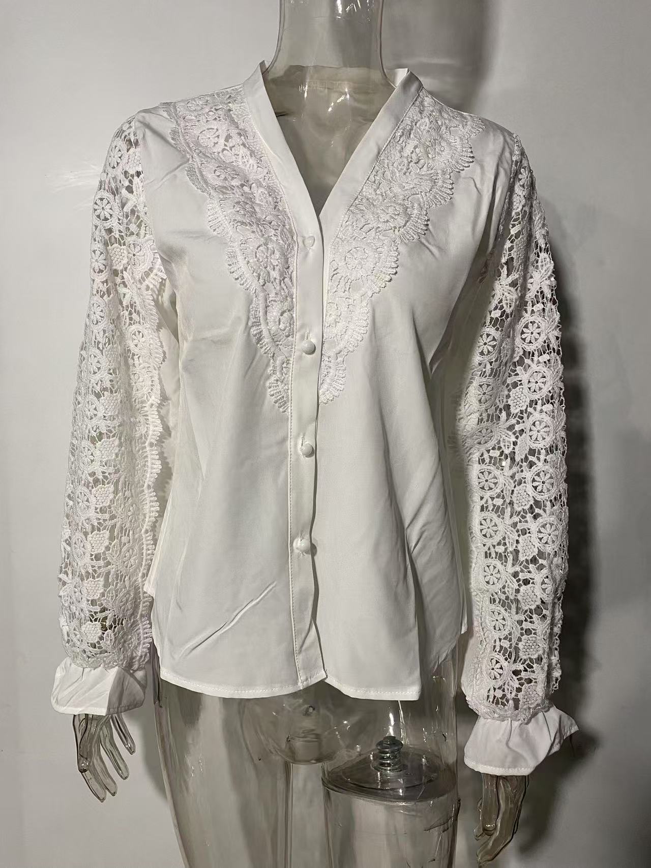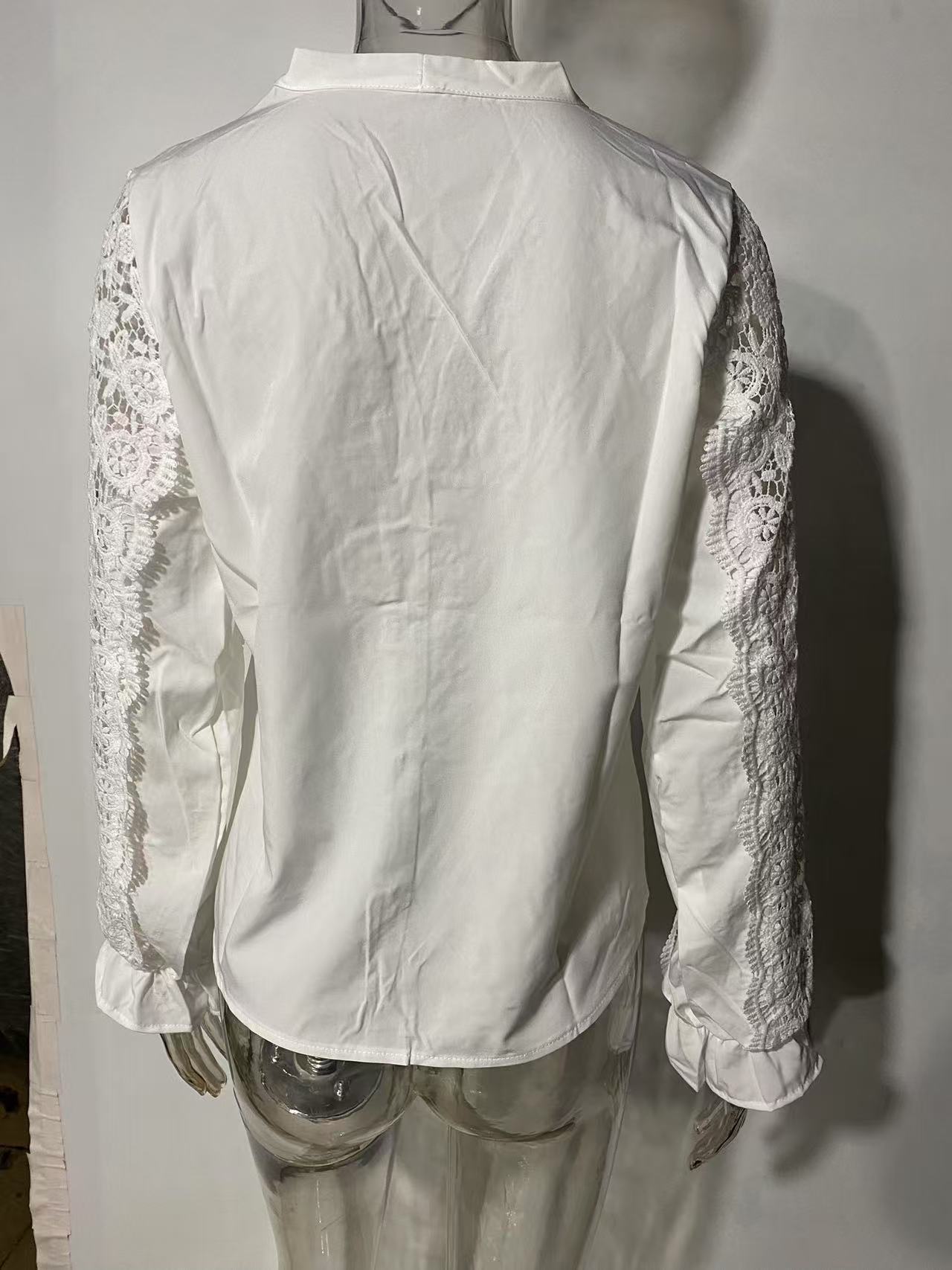 Estación Europea 2021 Exportación Aliexpress Wish Camisa Nueva Color Puro Encaje Cuello en V Cárdigan Camisa de Mujer