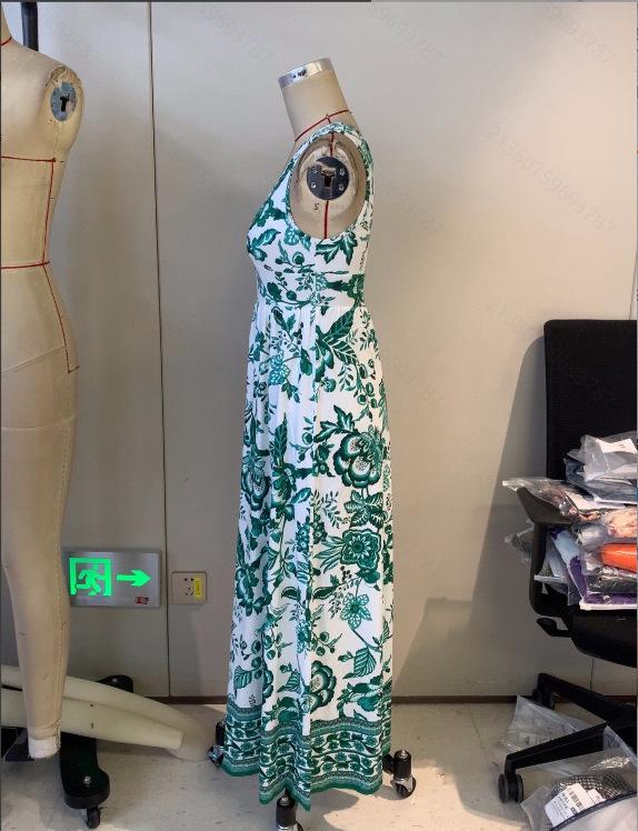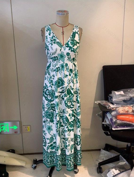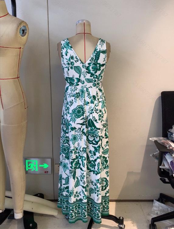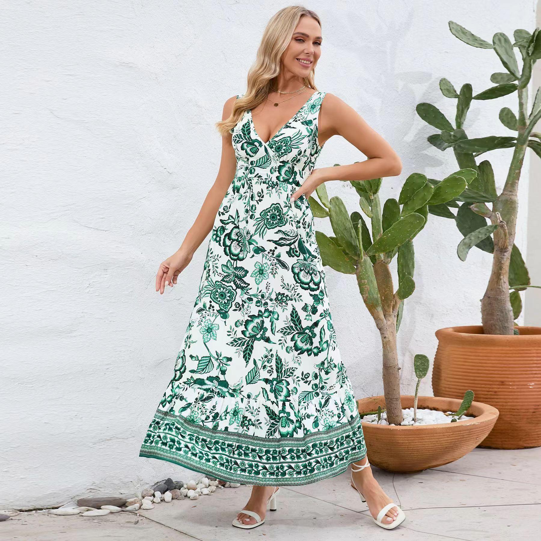Vestido elegante ajustado con cuello en V sexy de verano 2025 para mujer europea y americana, vestido floral vintage con estampado maxi.