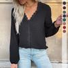 Estación independiente 2025 nuevo cárdigan de manga larga de color sólido europeo y americano transfronterizo Amazon cuello en V moda top suelto mujer