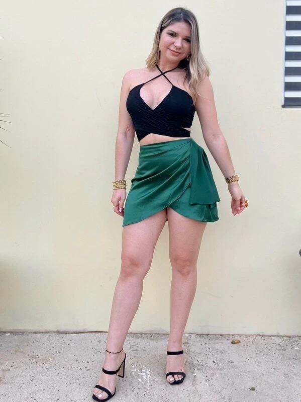 Falda plisada con cremallera irregular para verano de 2024, de satén de color liso europeo y americano, de cintura alta, ropa de mujer transfronteriza