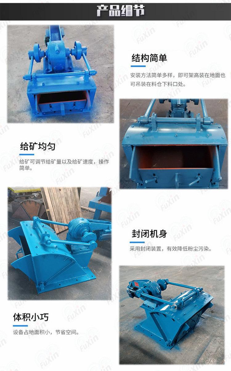 El alimentador pendular es adecuado para beneficio de minerales, carbón, industria química y otros departamentos para entregar materiales granulares desde el tanque de almacenamiento a varios tipos de dispositivos receptores a través de la tolva. El alimentador pendular no es adecuado para transportar polvo seco o materiales de tamaño de partícula demasiado grande, de lo contrario se producirá contaminación por polvo y obstrucción de la boca de descarga.
