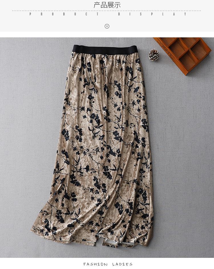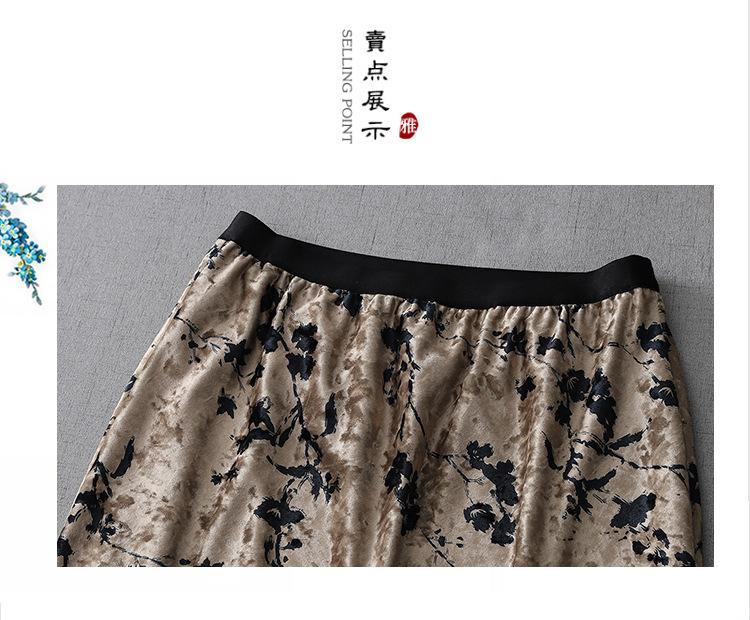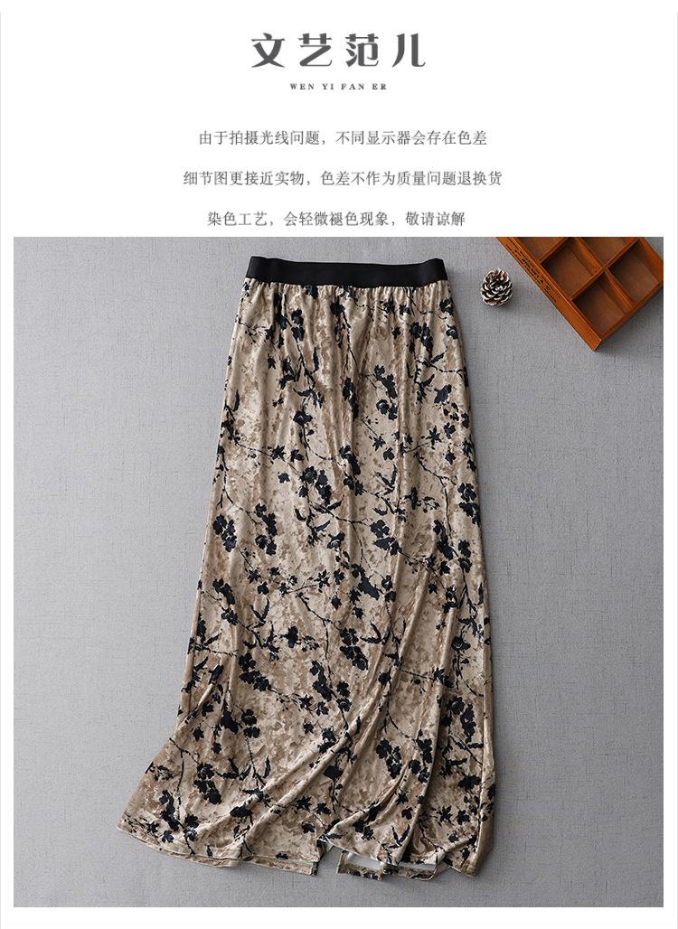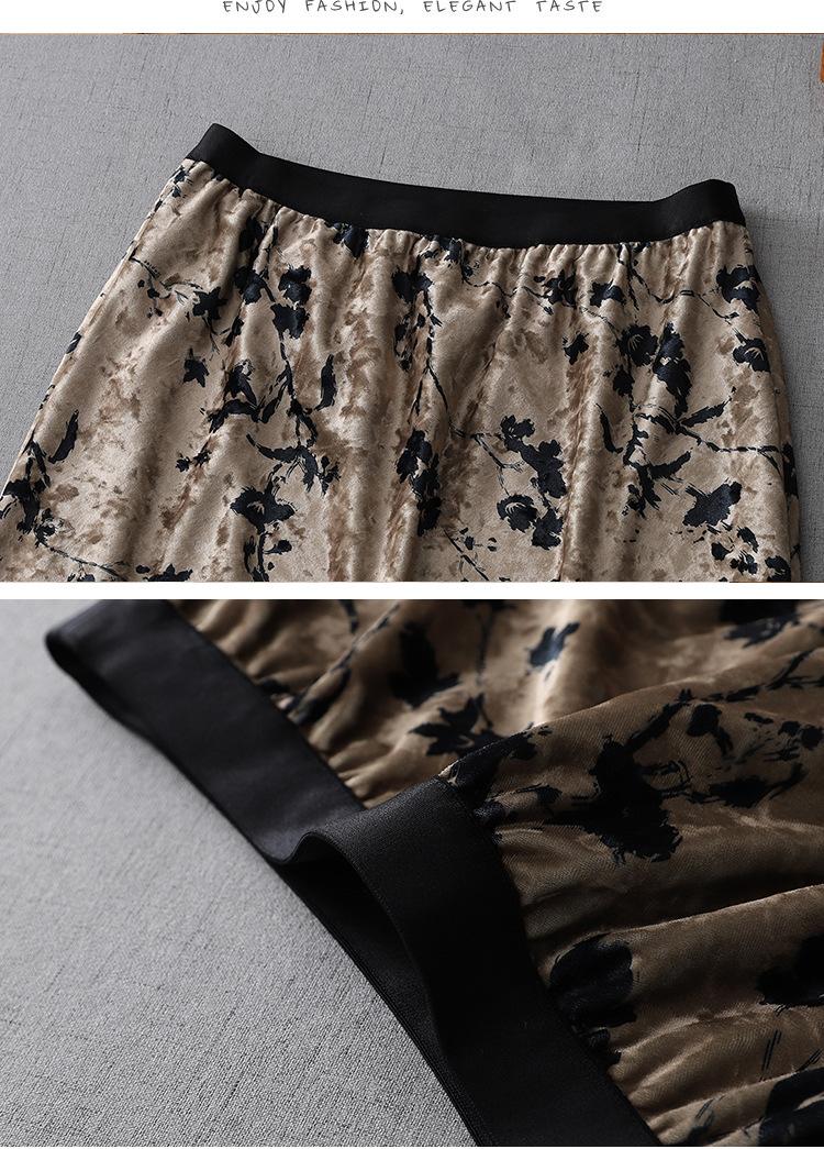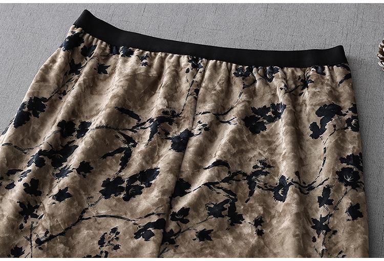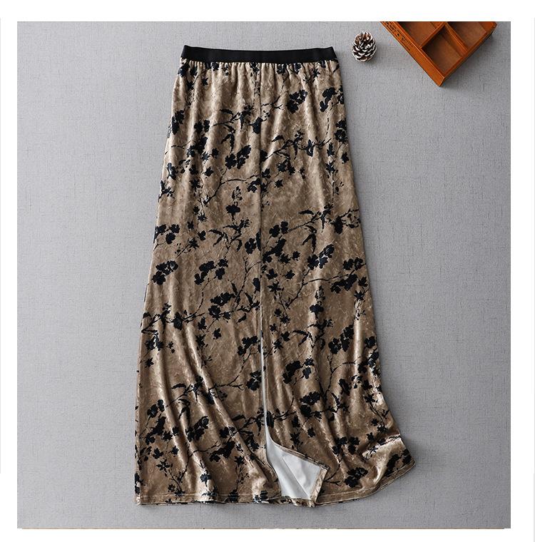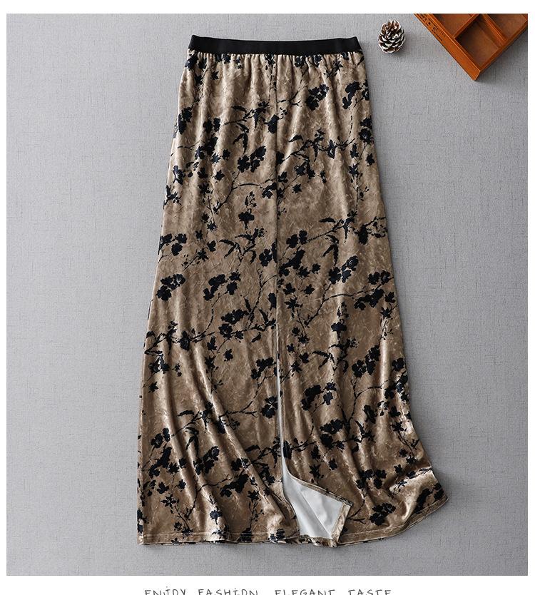 Falda de cola de pez de cintura alta de terciopelo chino, nueva falda larga de corte A para mujer, otoño 2024, #9569