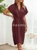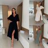 Vestido de verano 2025 con cuello en V, manga de loto y cintura alta, color sólido, para mujer, transfronterizo entre Europa y Estados Unidos, Amazon