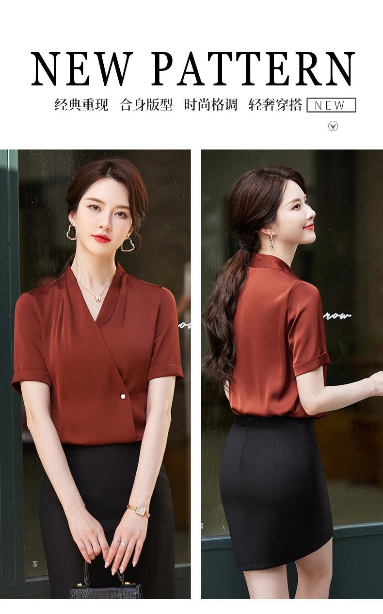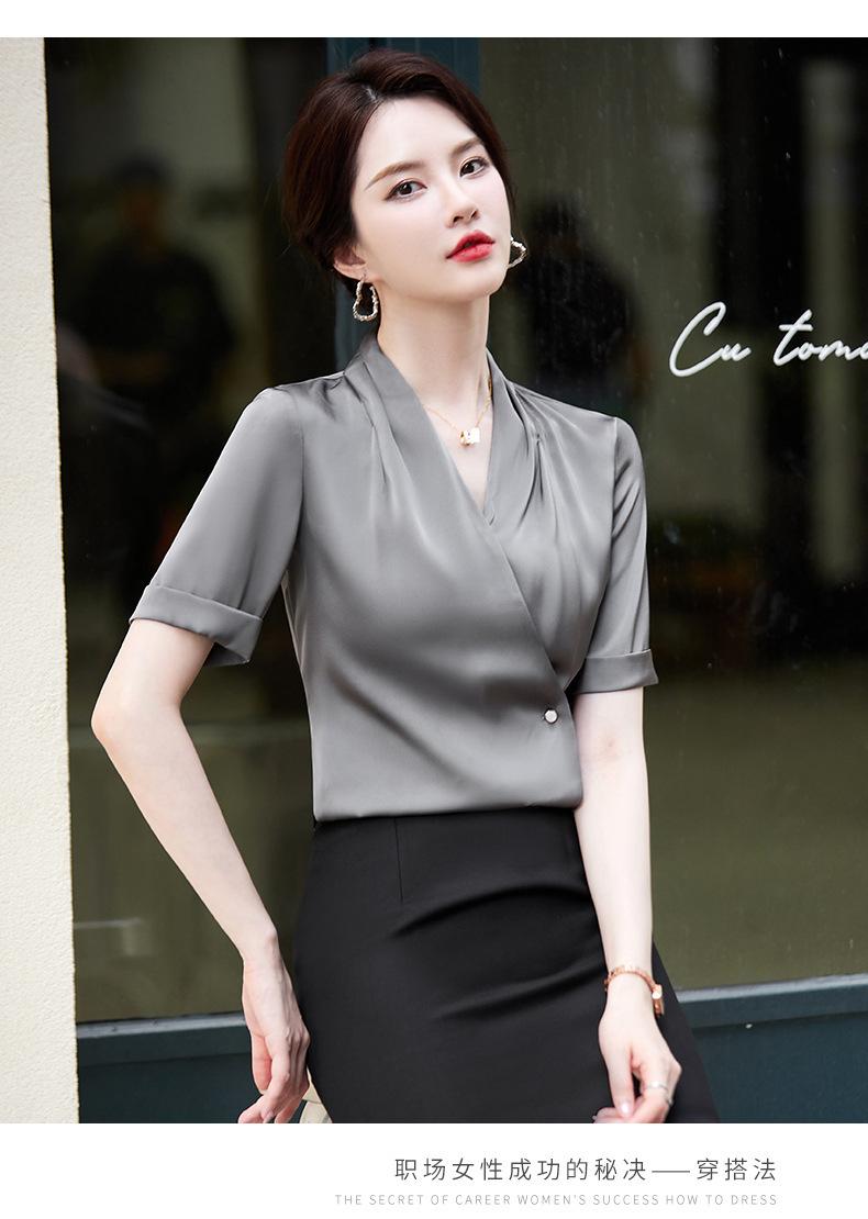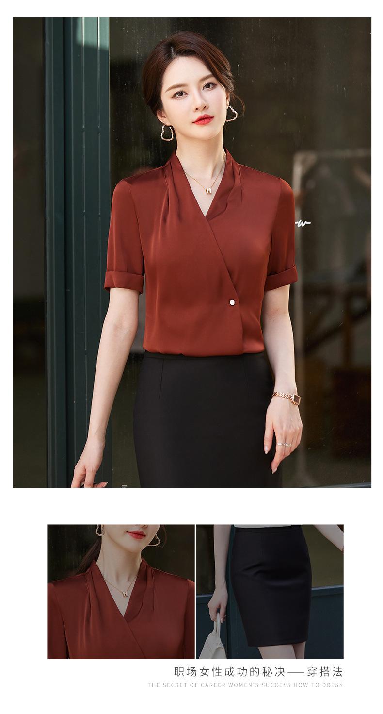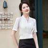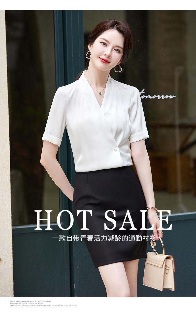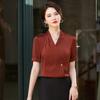 Camisa blanca de manga corta con cuello en V para mujer, nueva camisa burdeos profesional de verano, abrigo base de temperamento de moda simple para mujer