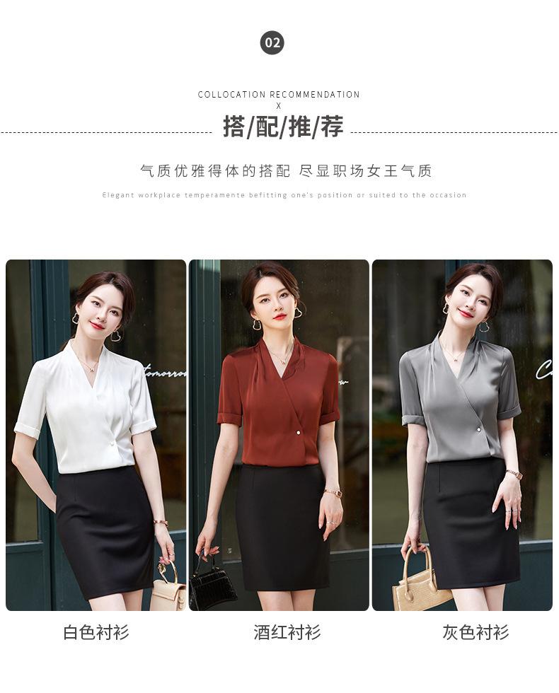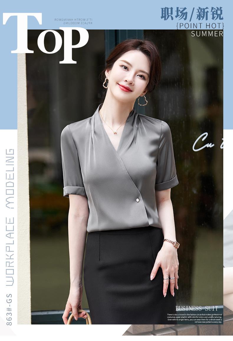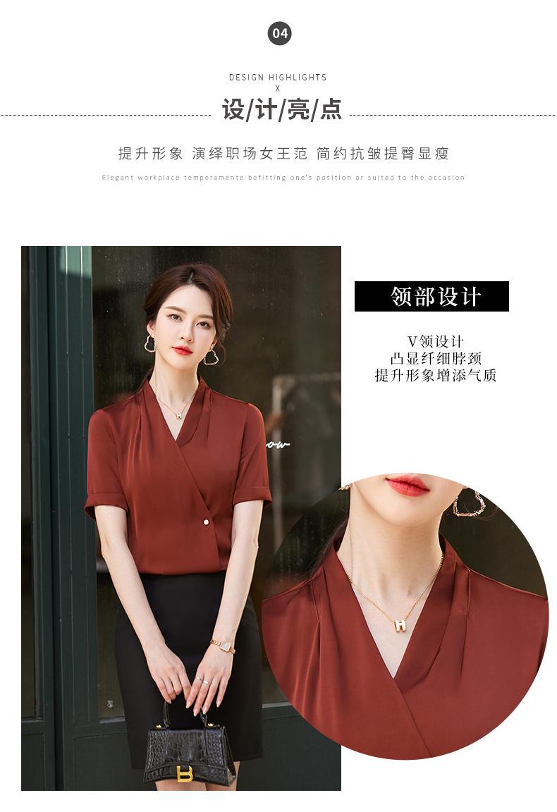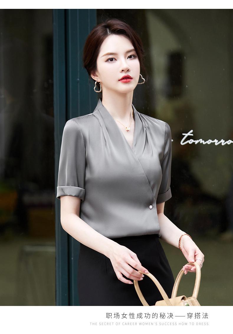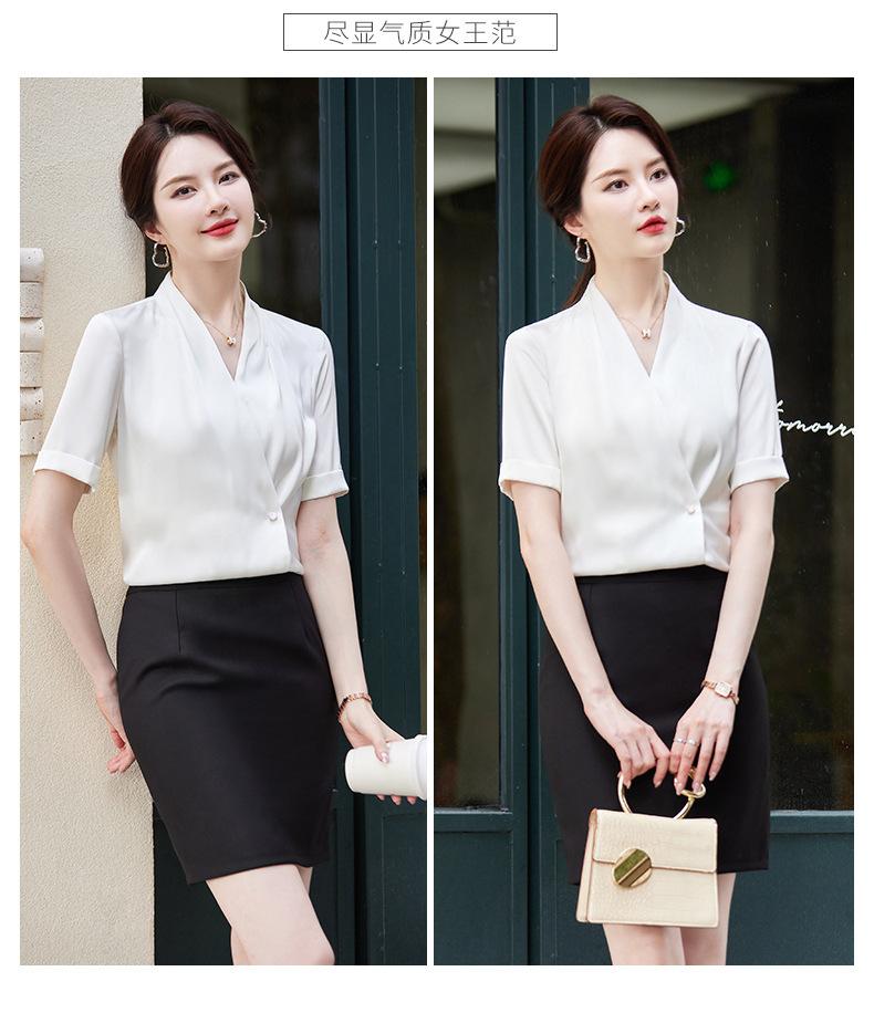 Camisa blanca de manga corta con cuello en V para mujer, nueva camisa burdeos profesional de verano, abrigo base de temperamento de moda simple para mujer