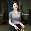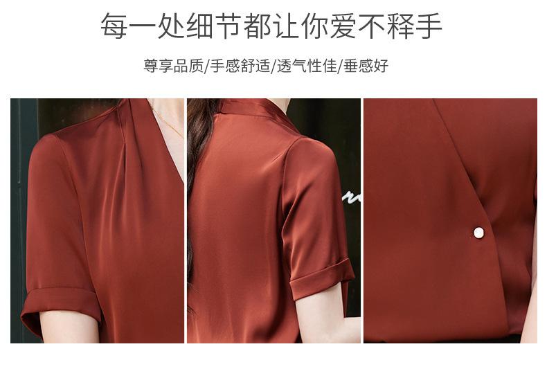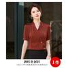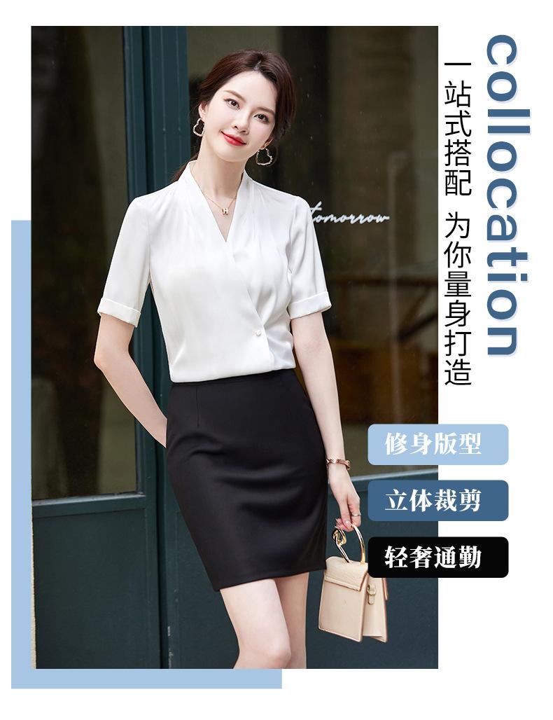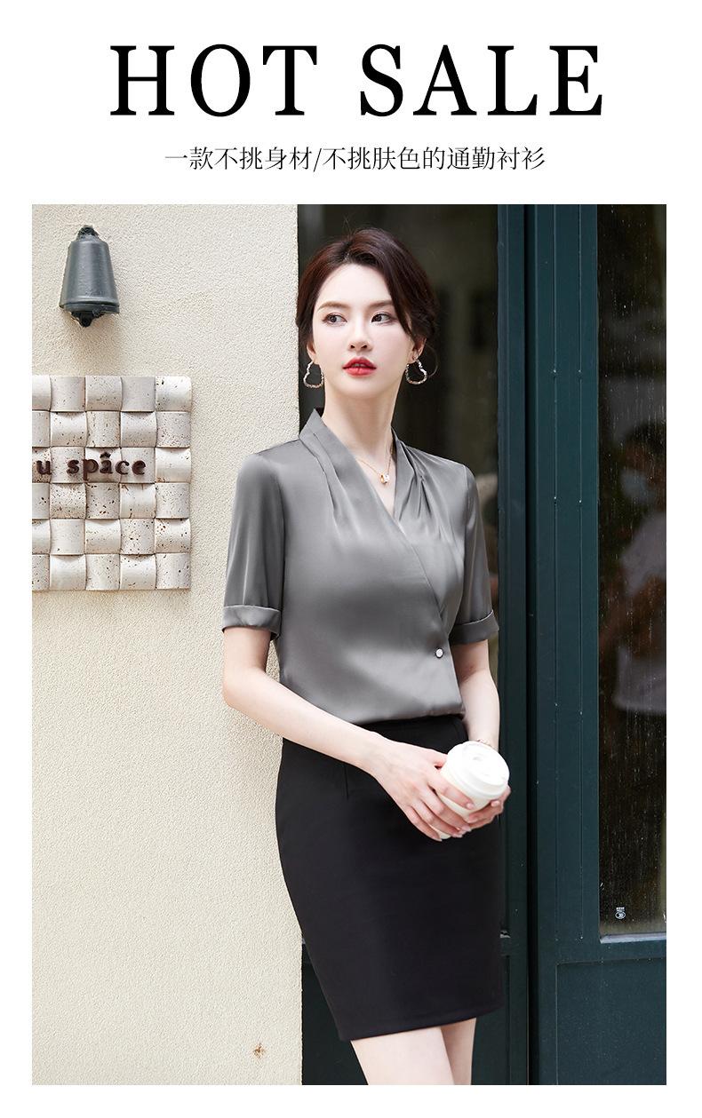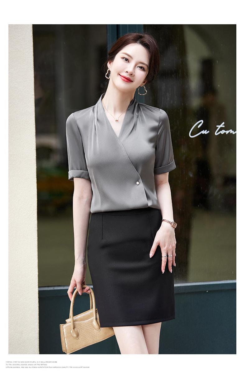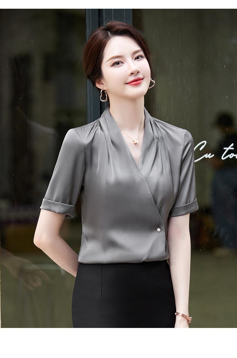 Camisa blanca de manga corta con cuello en V para mujer, nueva camisa burdeos profesional de verano, abrigo base de temperamento de moda simple para mujer