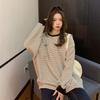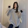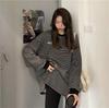 Camiseta a Rayas Estilo Universitario para Mujer 2025 Otoño Nuevo Estilo Coreano Logotipo de Letras Jersey Holgado Efecto Adelgazante Cuello Redondo Top