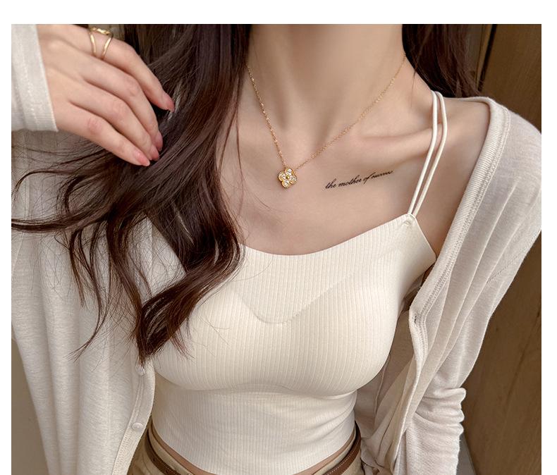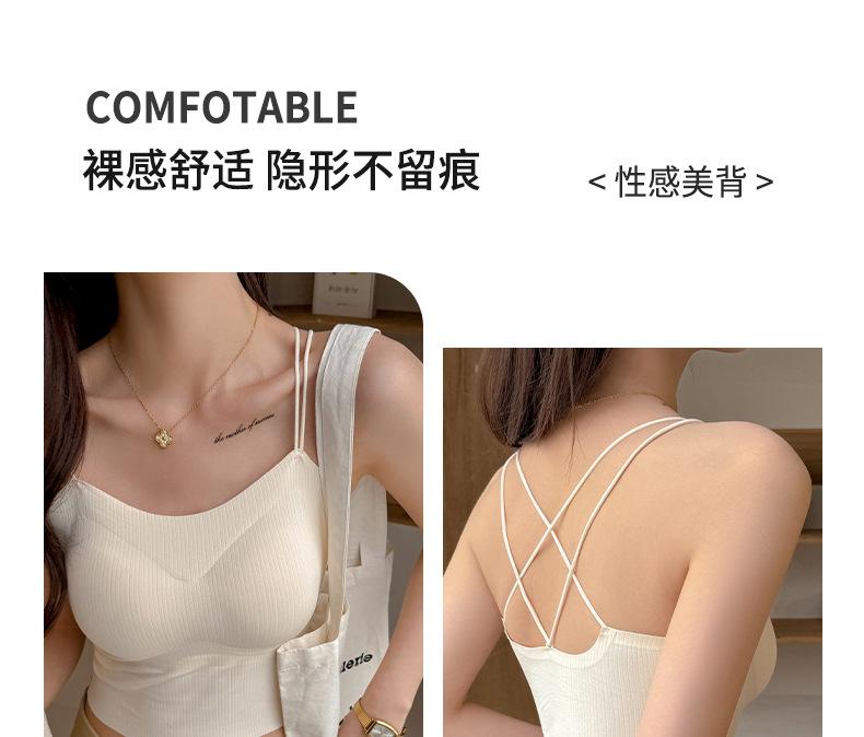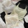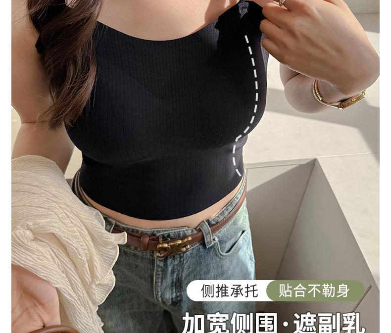 Camisola de Tirantes Dobles para Primavera y Verano de Fábrica para Mujer, Todo en Uno, Look Adelgazante, Top Corto de Color Puro con Almohadilla en el Pecho