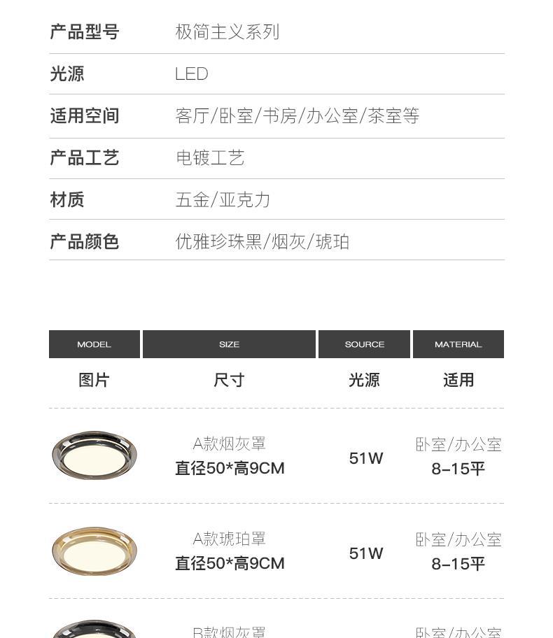 Lámpara de techo minimalista para dormitorio, moderna y sencilla, estilo Bauhaus, para sala de estar, lámpara principal de ambiente de espectro completo, protección ocular, estilo crema.