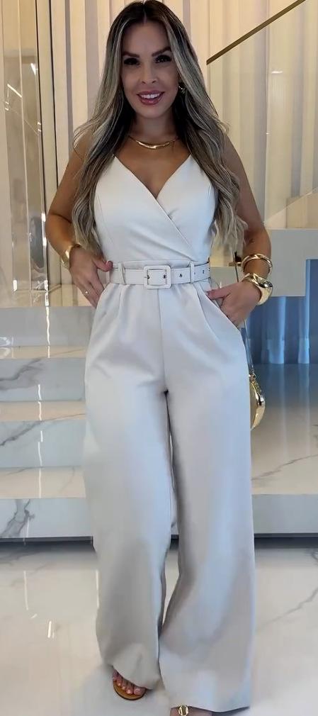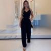 Pantalones de pierna ancha con escote en V, sin tirantes, sin espalda, de color sólido, de Amazon, de moda, de primavera 2025, de estilo europeo y americano