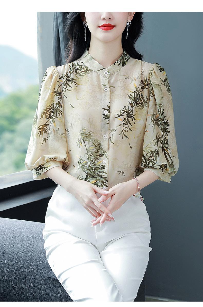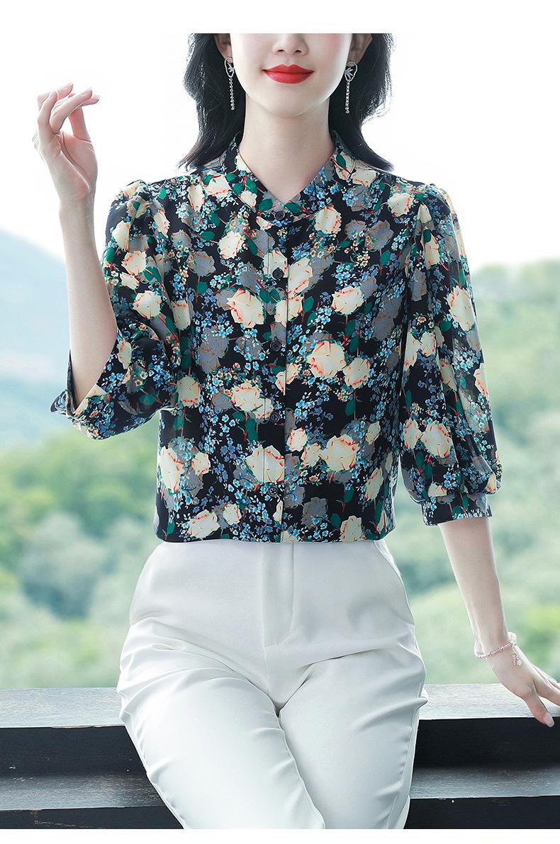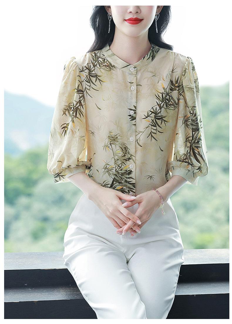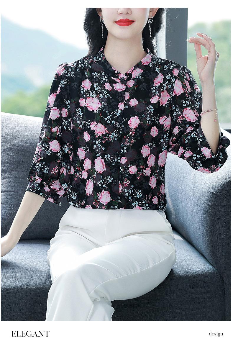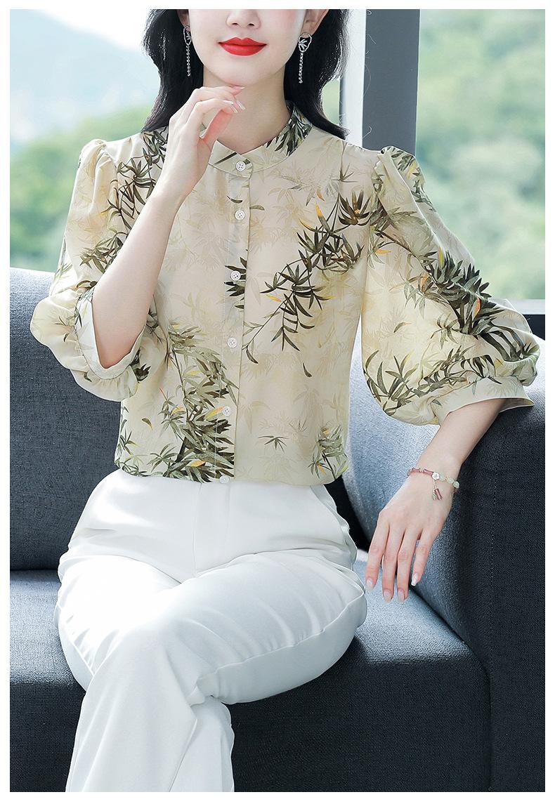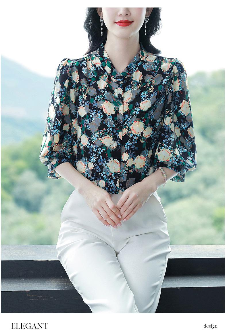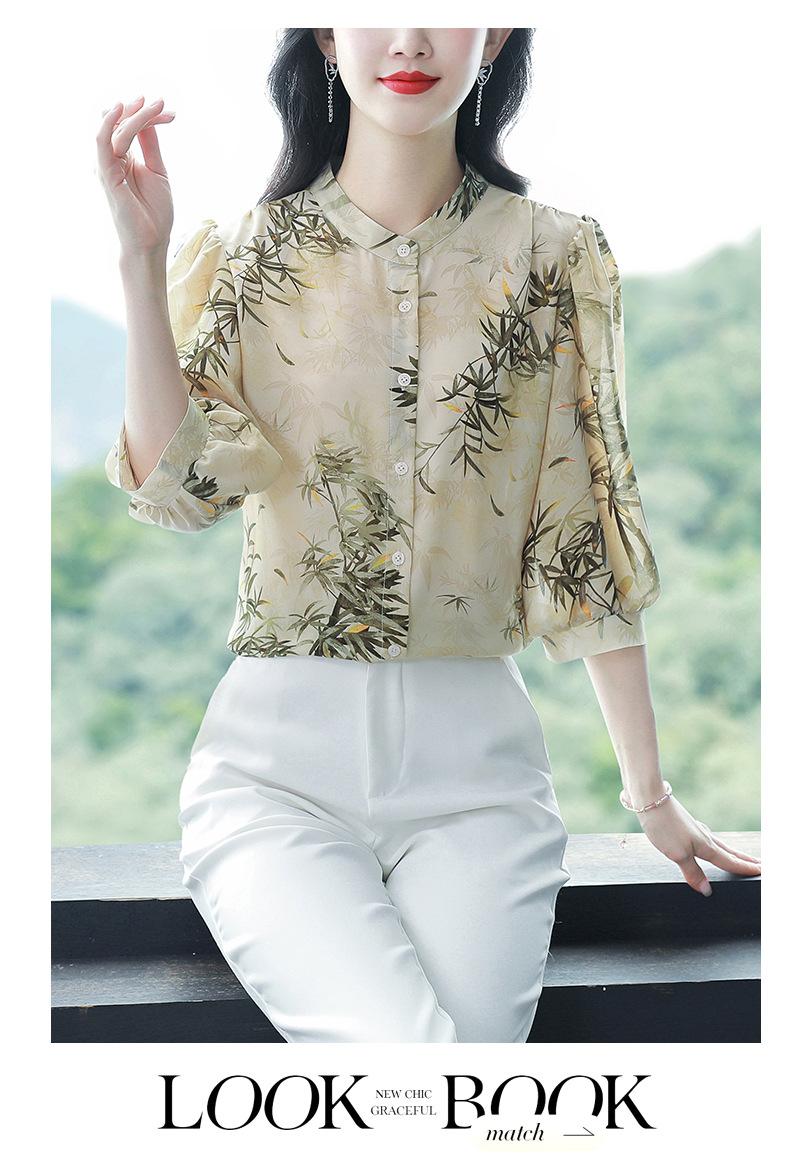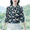 Camisa de seda morera de mediana edad con mangas de siete puntos, estilo occidental, nueva camisa de gasa de seda primavera-verano 2025 para mujer
