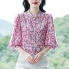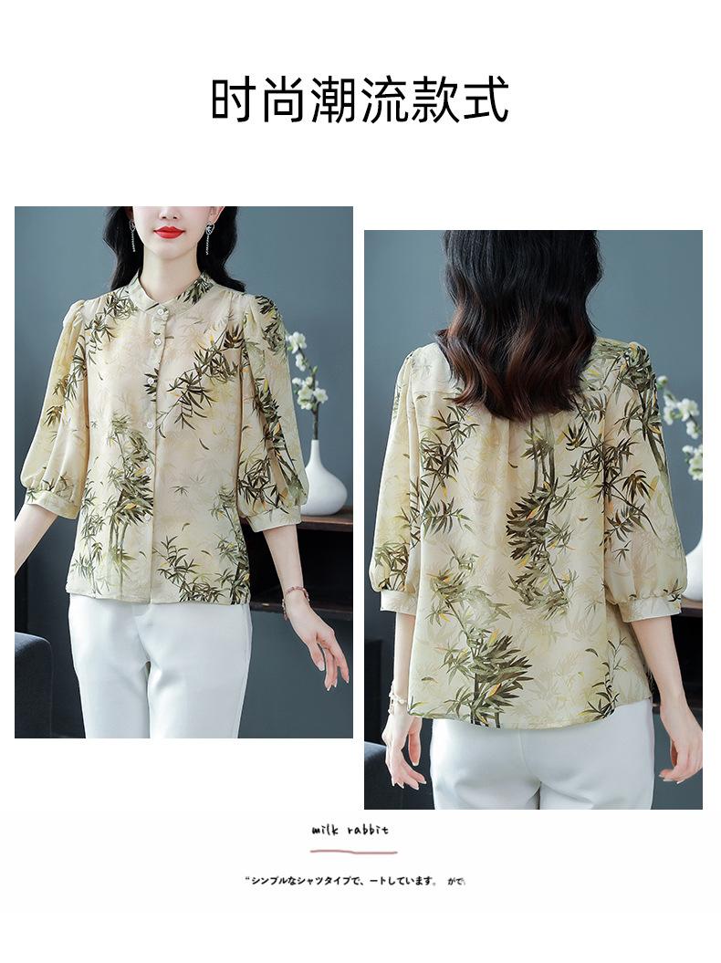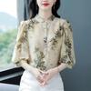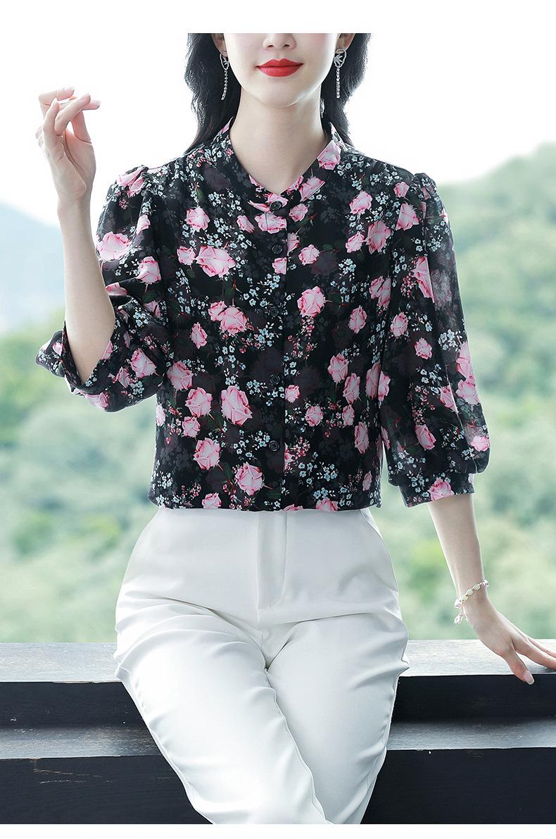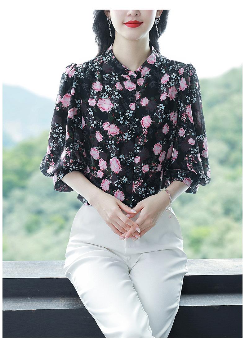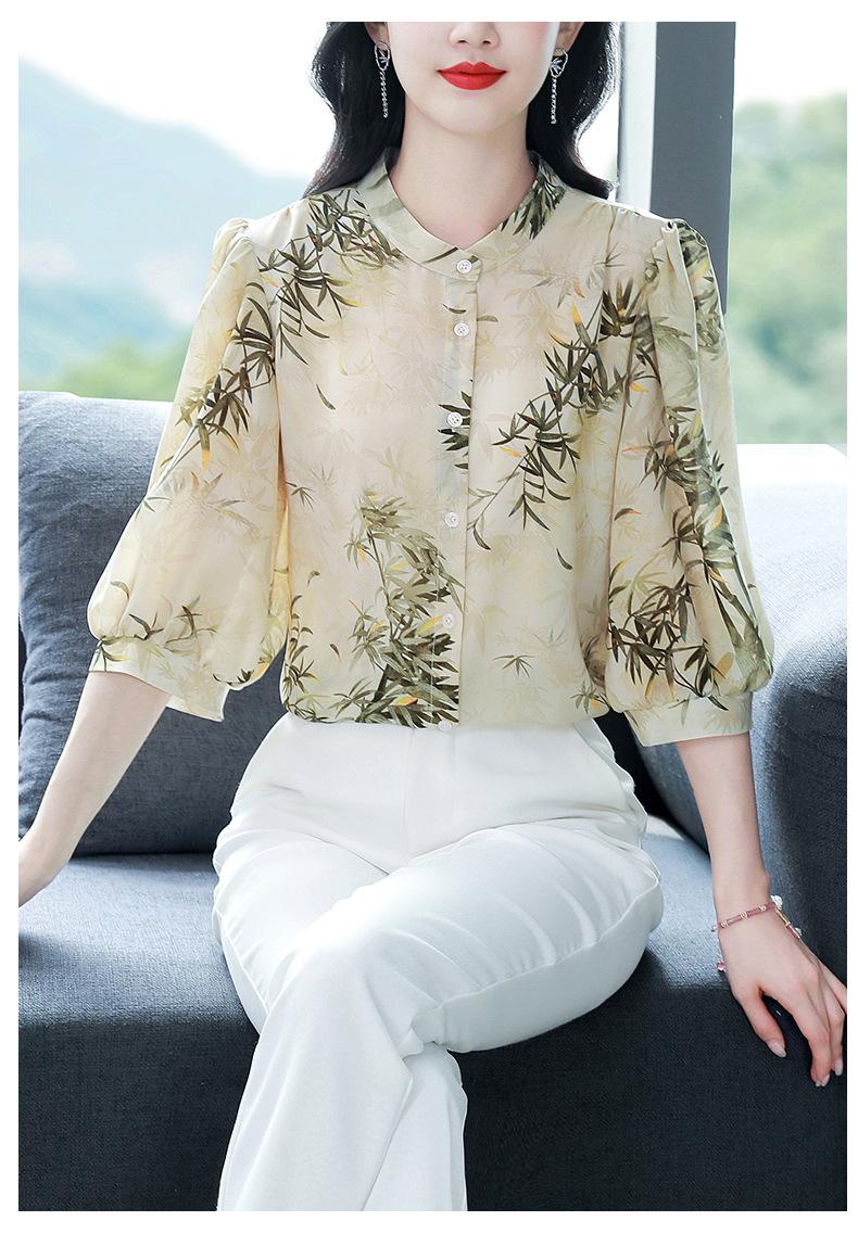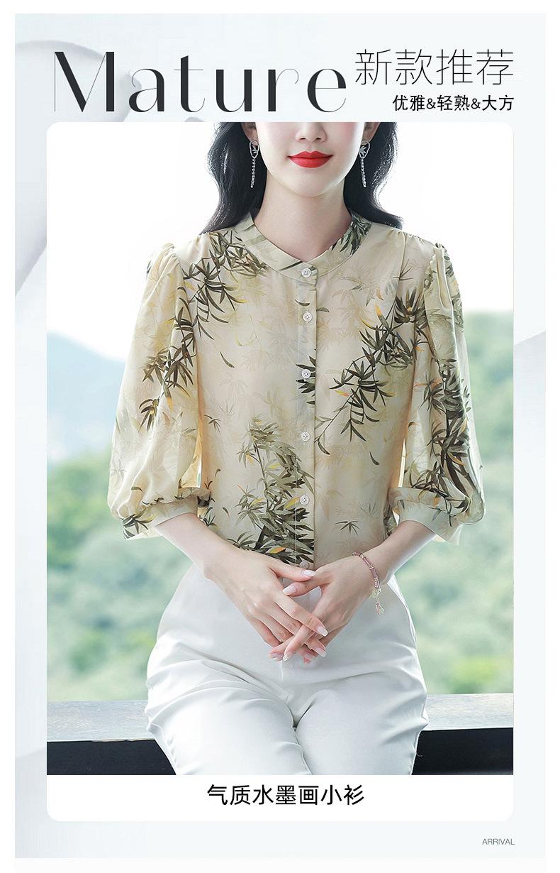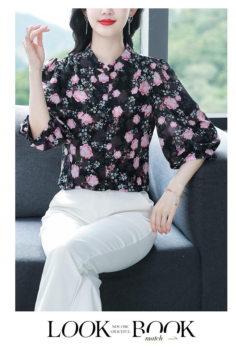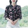 Camisa de seda morera de mediana edad con mangas de siete puntos, estilo occidental, nueva camisa de gasa de seda primavera-verano 2025 para mujer